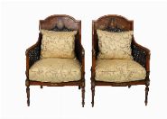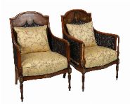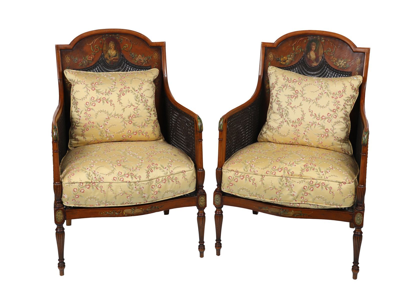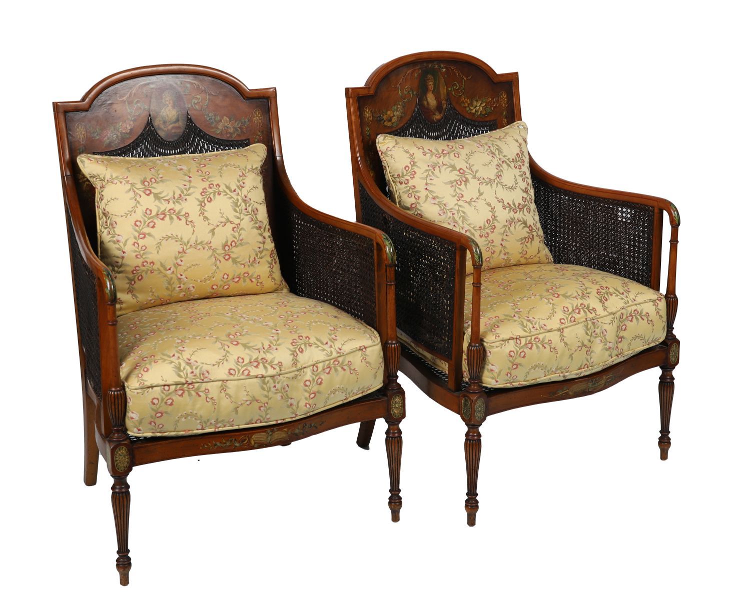 Lot 105 PAIR OF 19TH-CENTURY SATINWOOD AND PAINTED BERGERE ARMCHAIRS