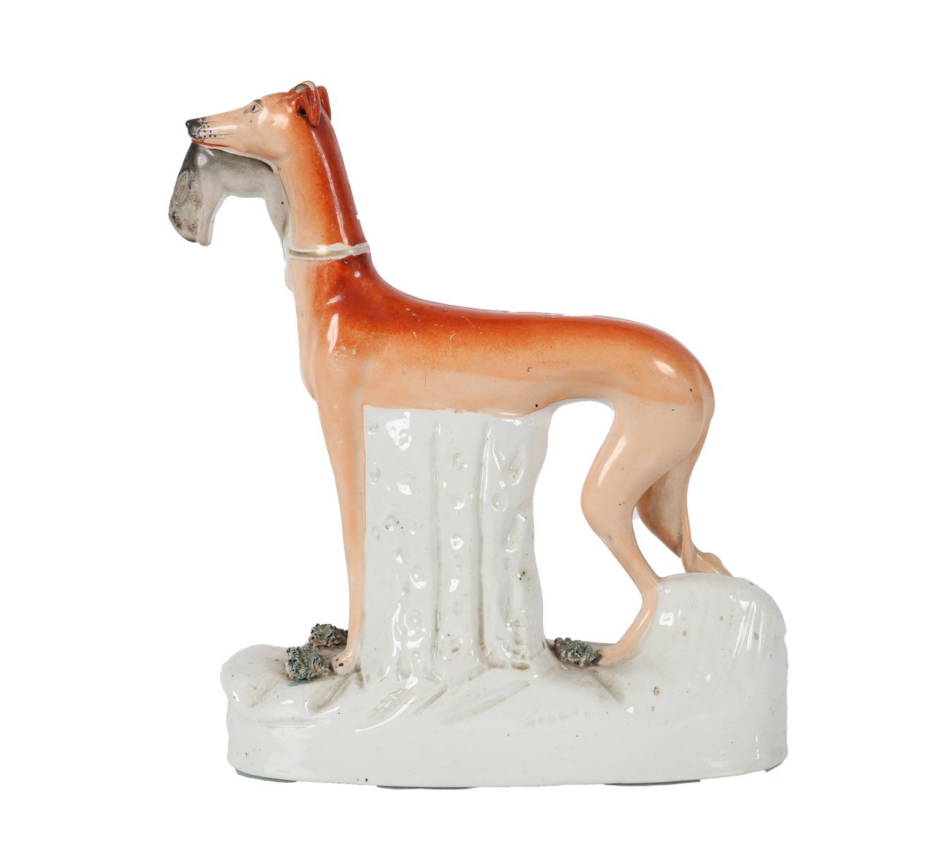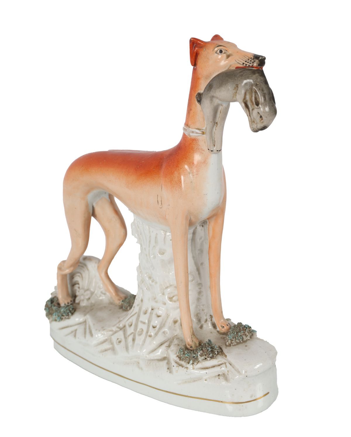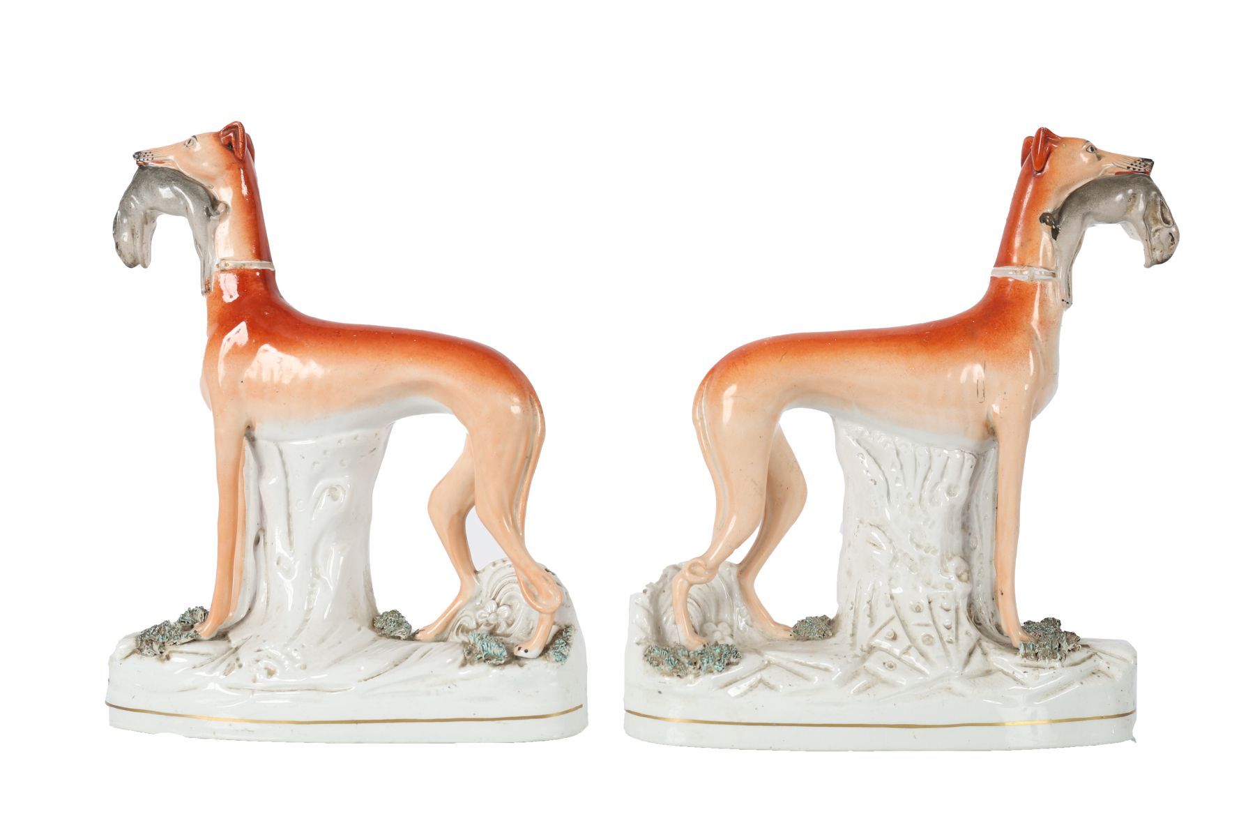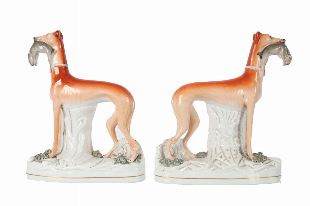 Lot 338 PAIR OF 19TH-CENTURY STAFFORDSHIRE GREYHOUND FIGURES