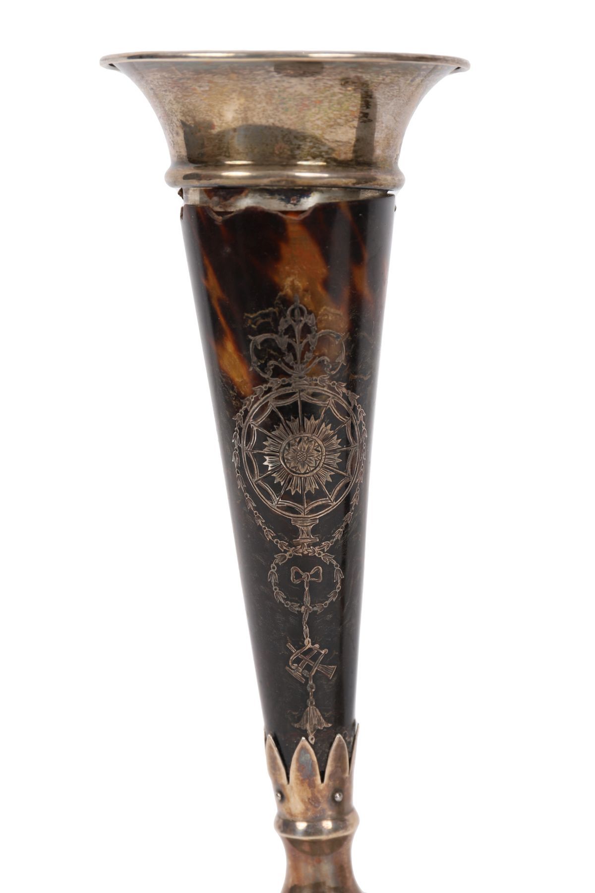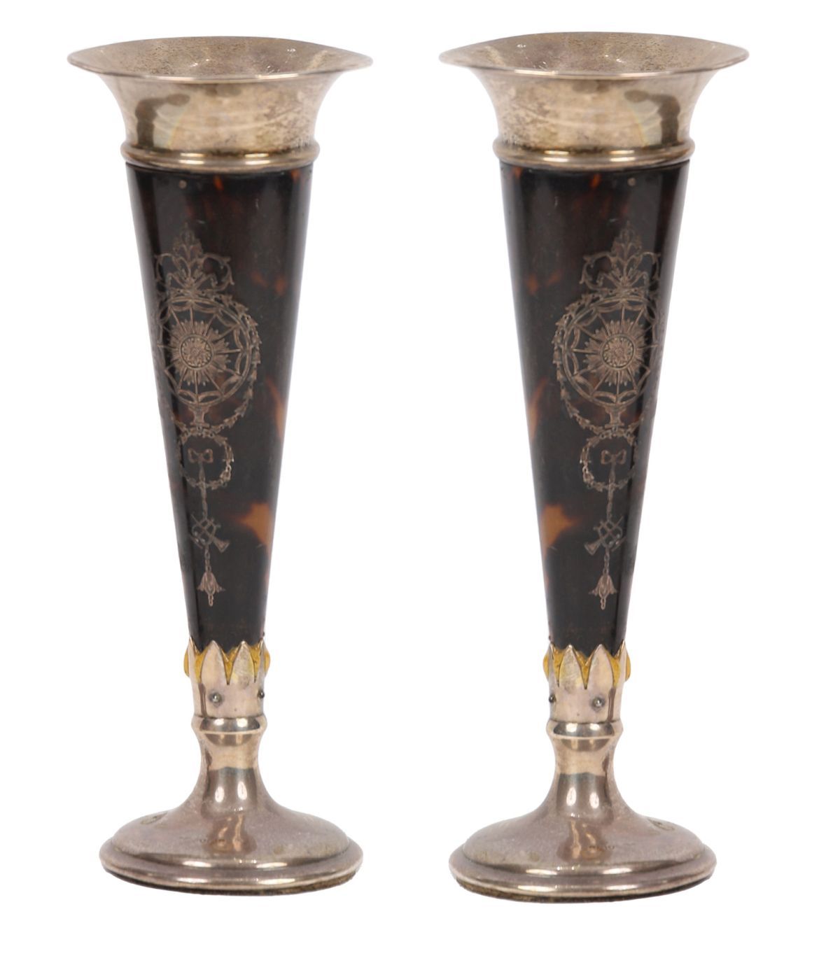 Lot 549 PAIR OF 19TH-CENTURY TORTOISESHELL AND SILVER-INLAID BUD VASES