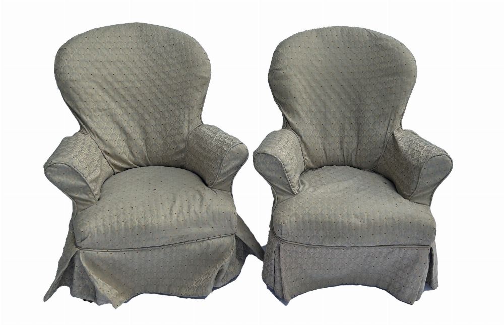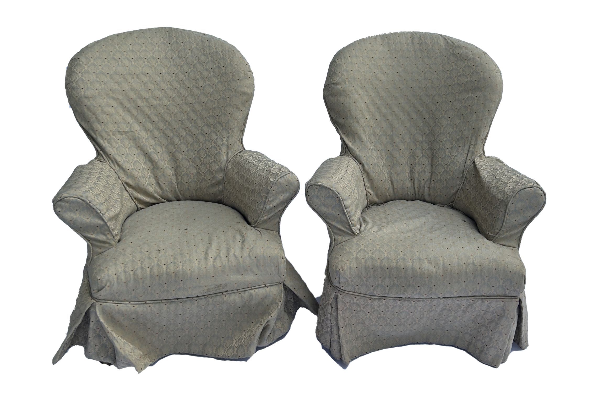 Lot 757 PAIR OF 19TH-CENTURY UPHOLSTERED AND MAHOGANY SPOON BACK ARM CHAIRS