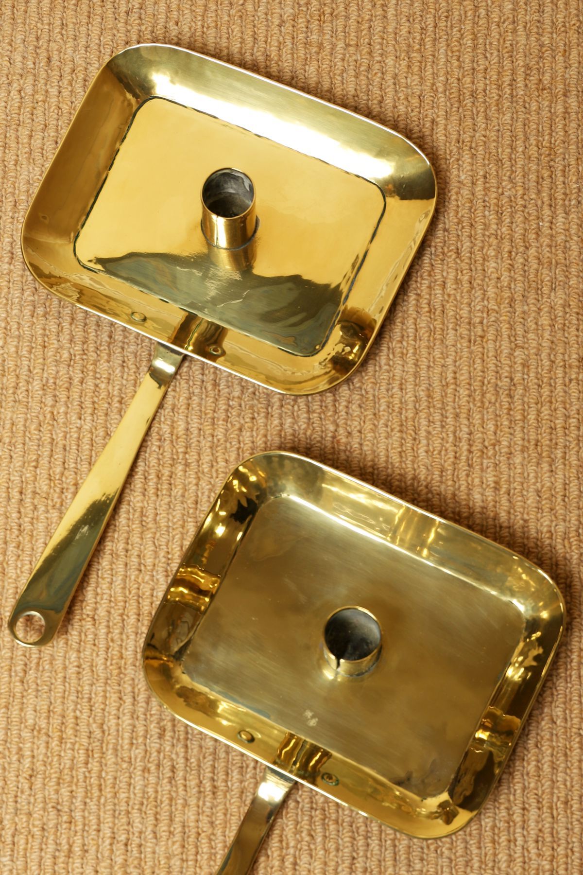 Each with rectangular drip pan and turned handle.