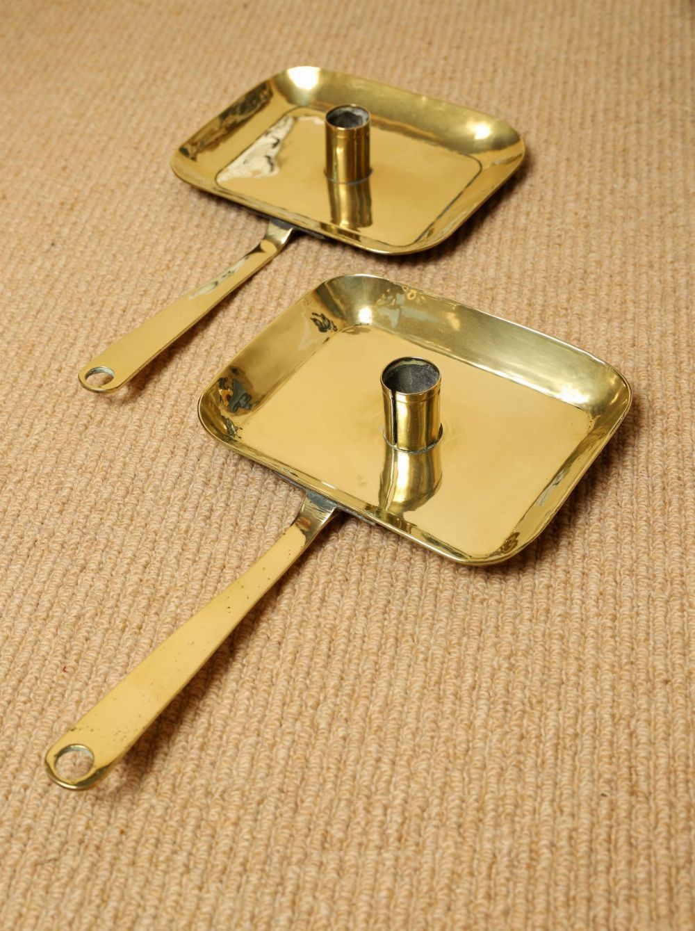 Lot 557 PAIR OF ANTIQUE BRASS CHAMBER CANDLESTICKS