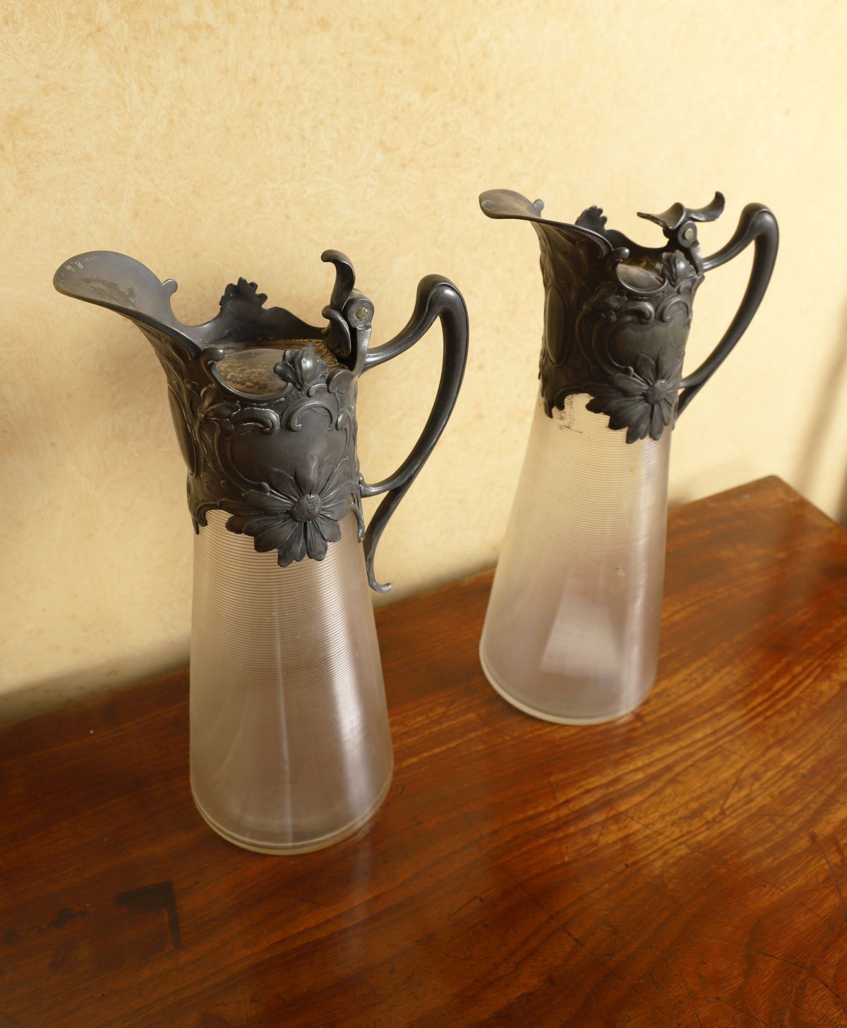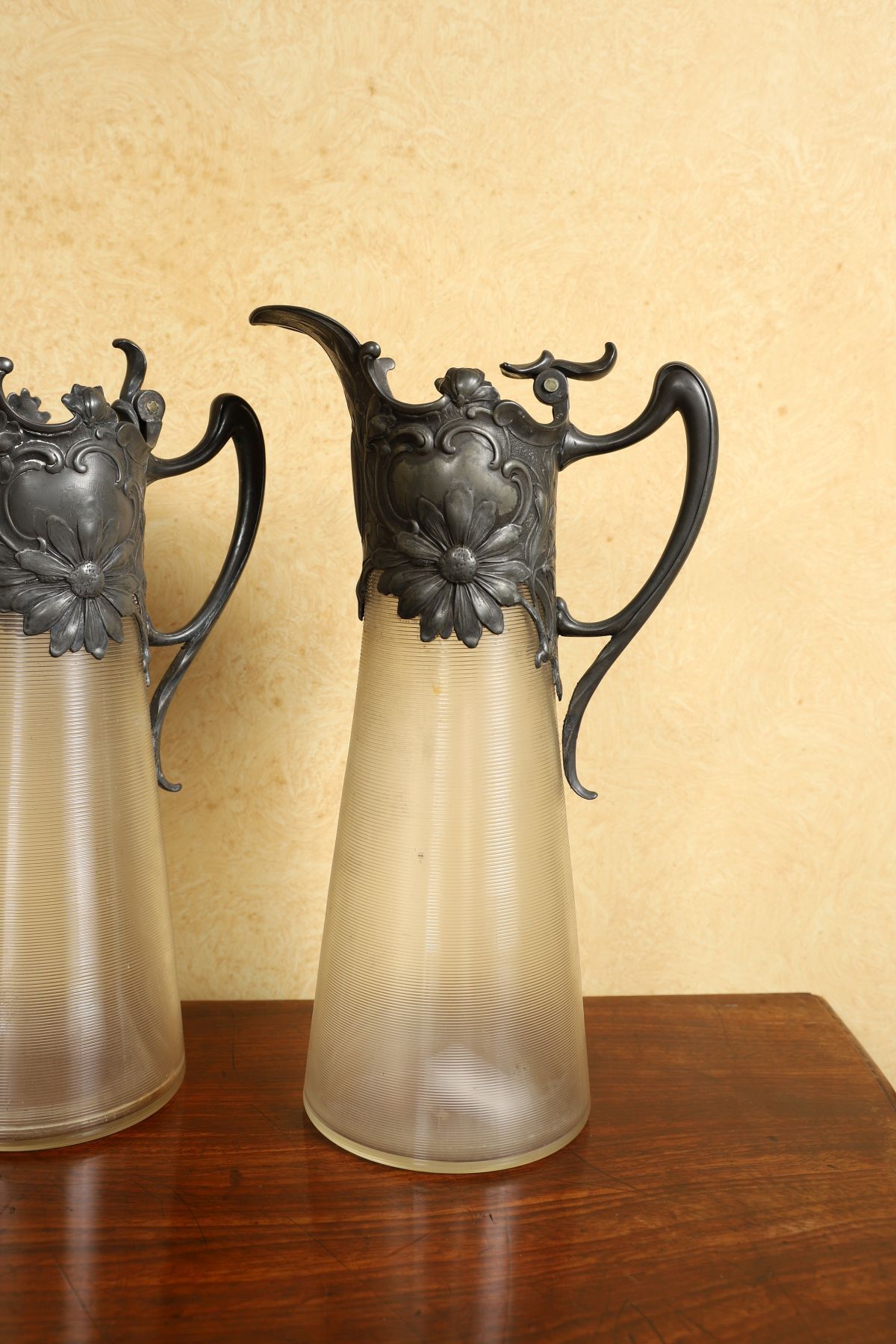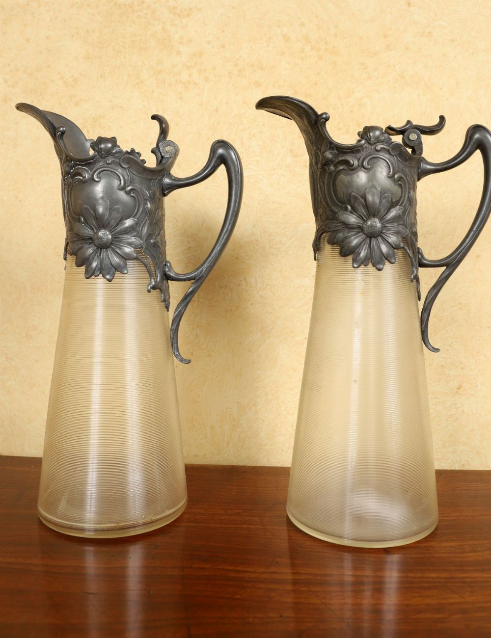 Lot 1029 PAIR OF ART NOUVEAU GLASS CLARET JUGS