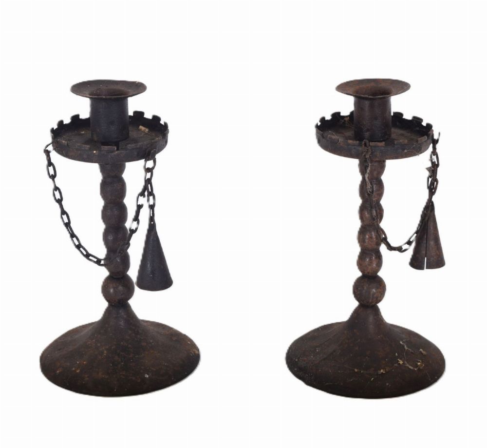 Lot 1513 PAIR OF BRONZED METAL CANDLESTICKS WITH SNUFFERS