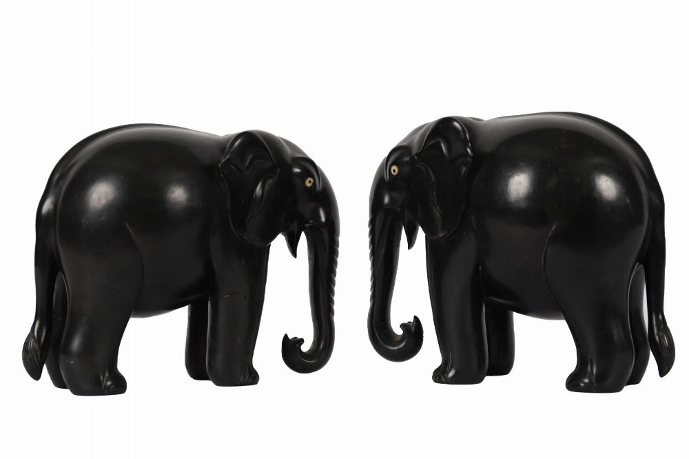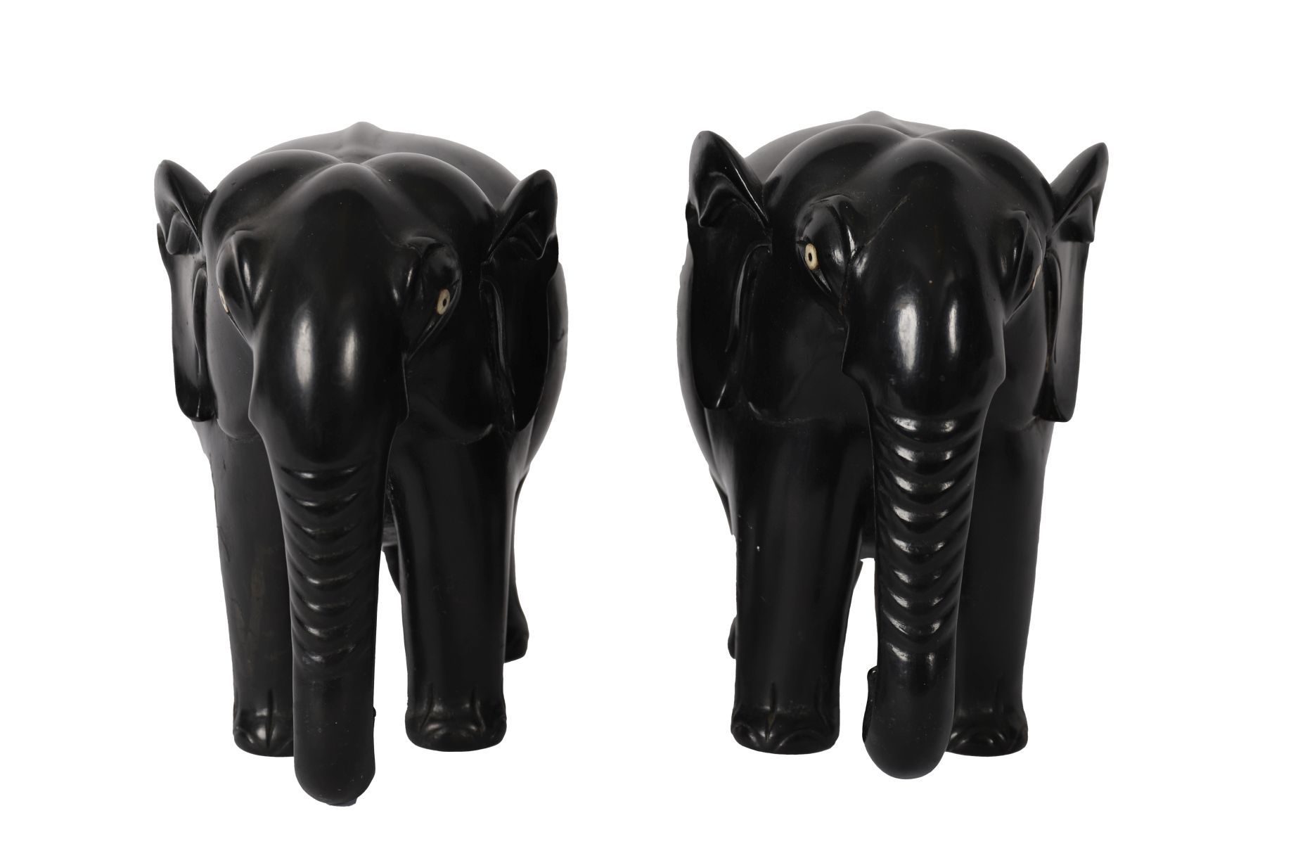 Lot 1015 PAIR OF CARVED EBONY ELEPHANTS