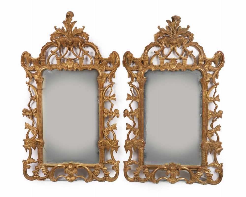 Lot 180 PAIR OF CARVED GILTWOOD ROCOCO PIER MIRRORS