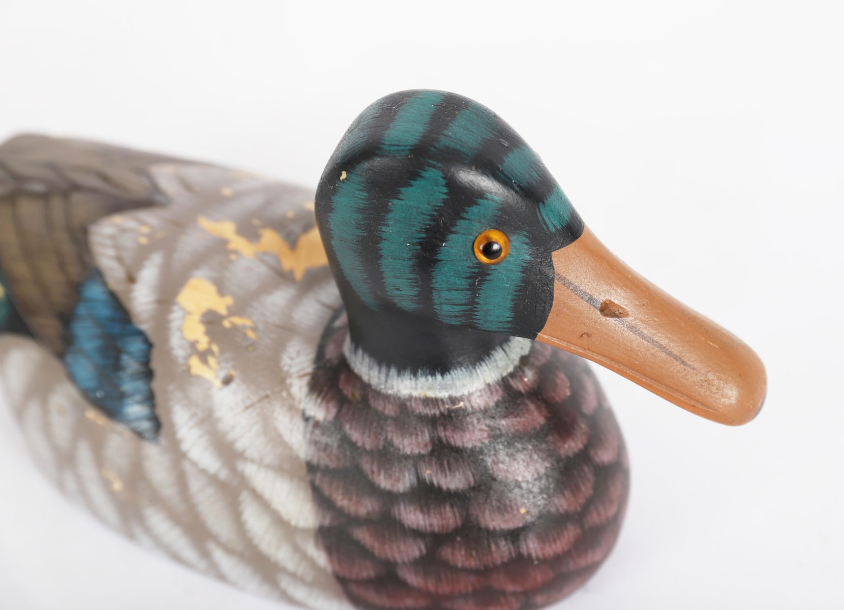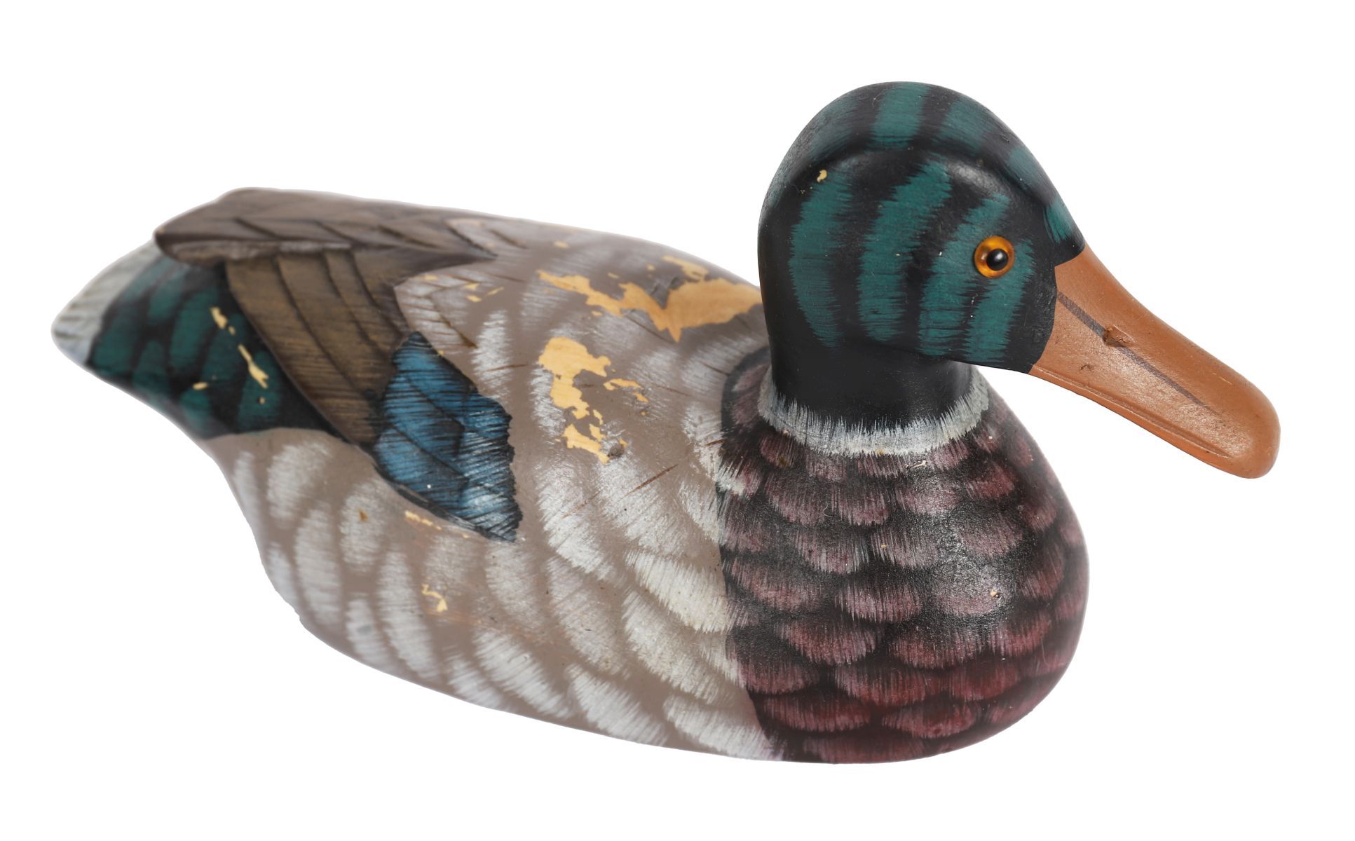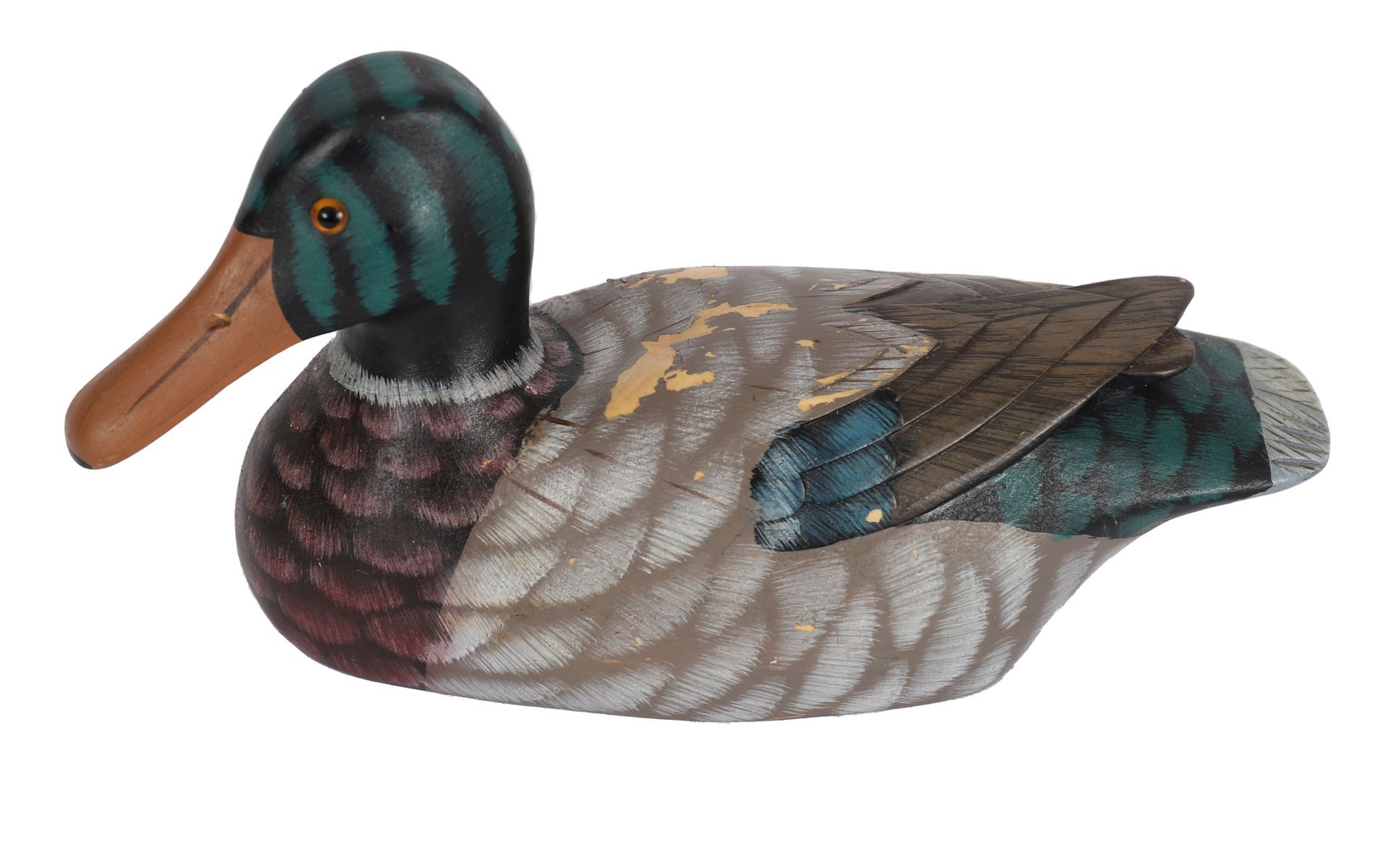 Naturalistic form with painted plumage decoration.