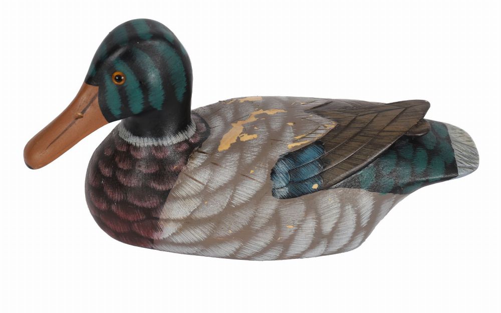 Lot 159 PAIR OF CARVED POLYCHROME WOOD DECOY DUCKS