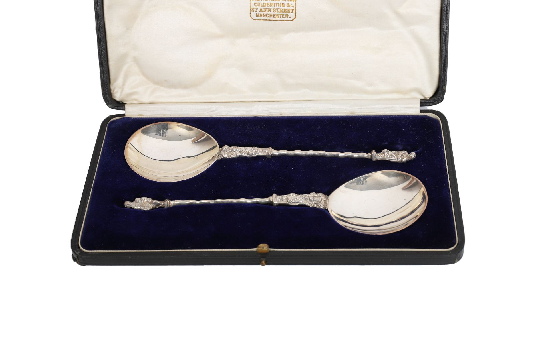 Lot 790 PAIR OF CASED SILVER SERVING SPOONS