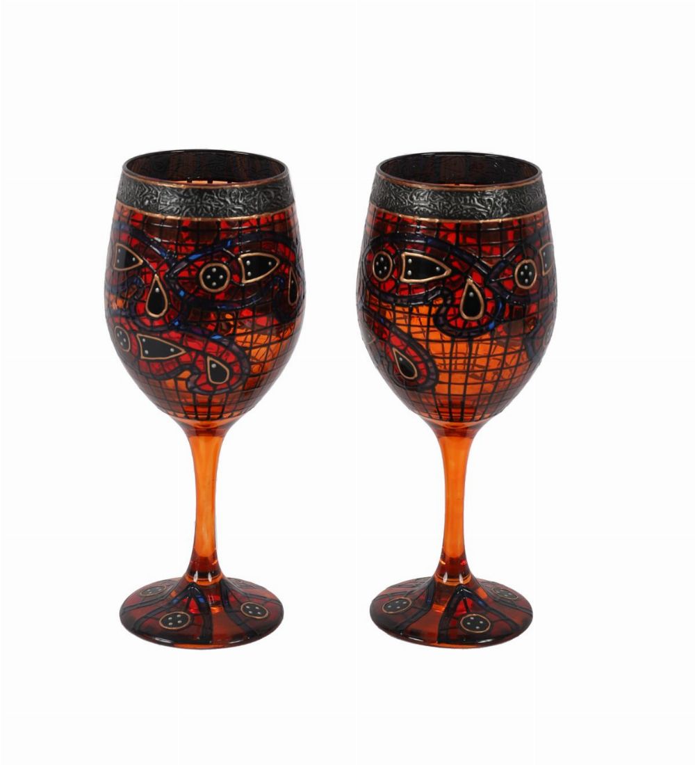 Lot 910 PAIR OF CELTIC STAINED GLASS WINE GOBLETS