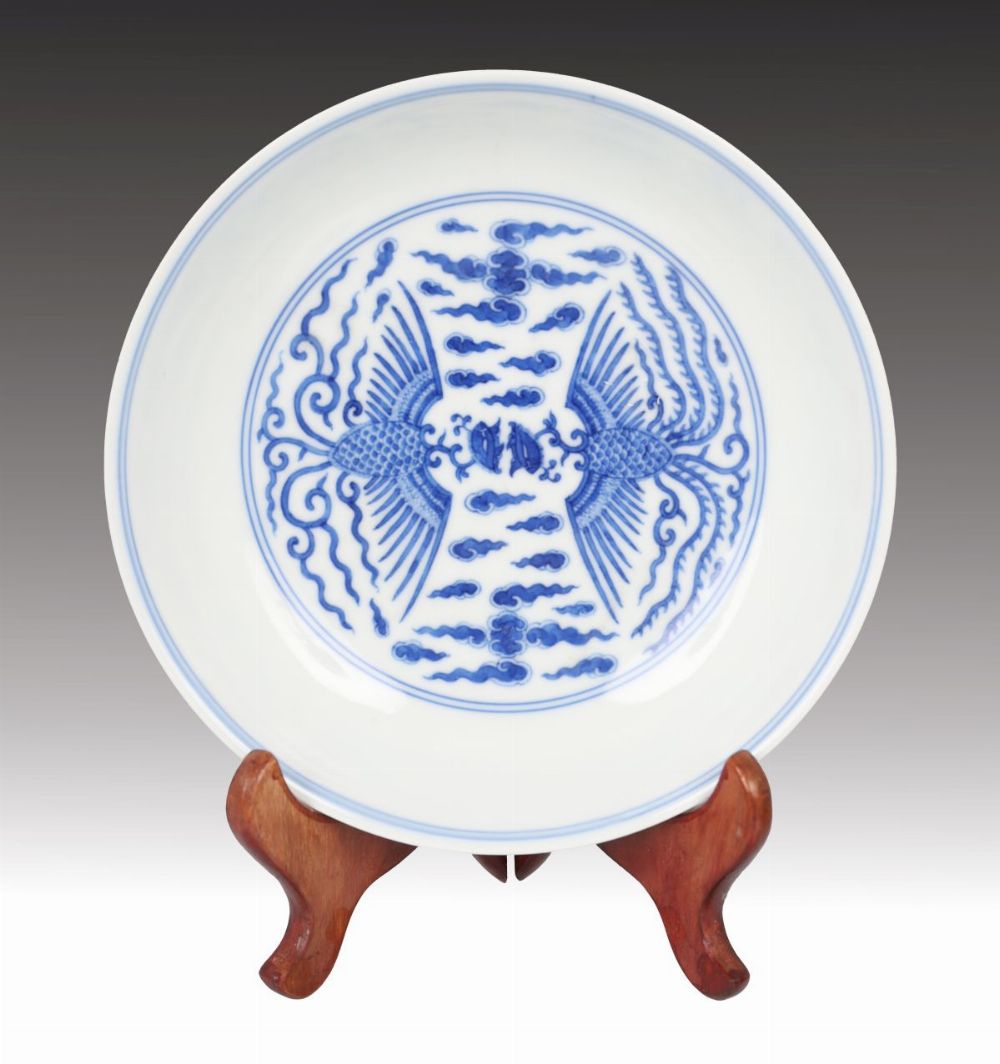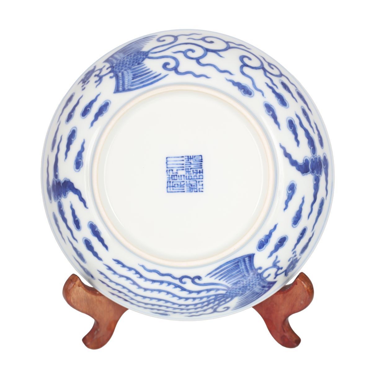 with central phoenix decorated cartouche, the body decorated with a phoenix floating amongst clouds, mark of Qianlong to base.