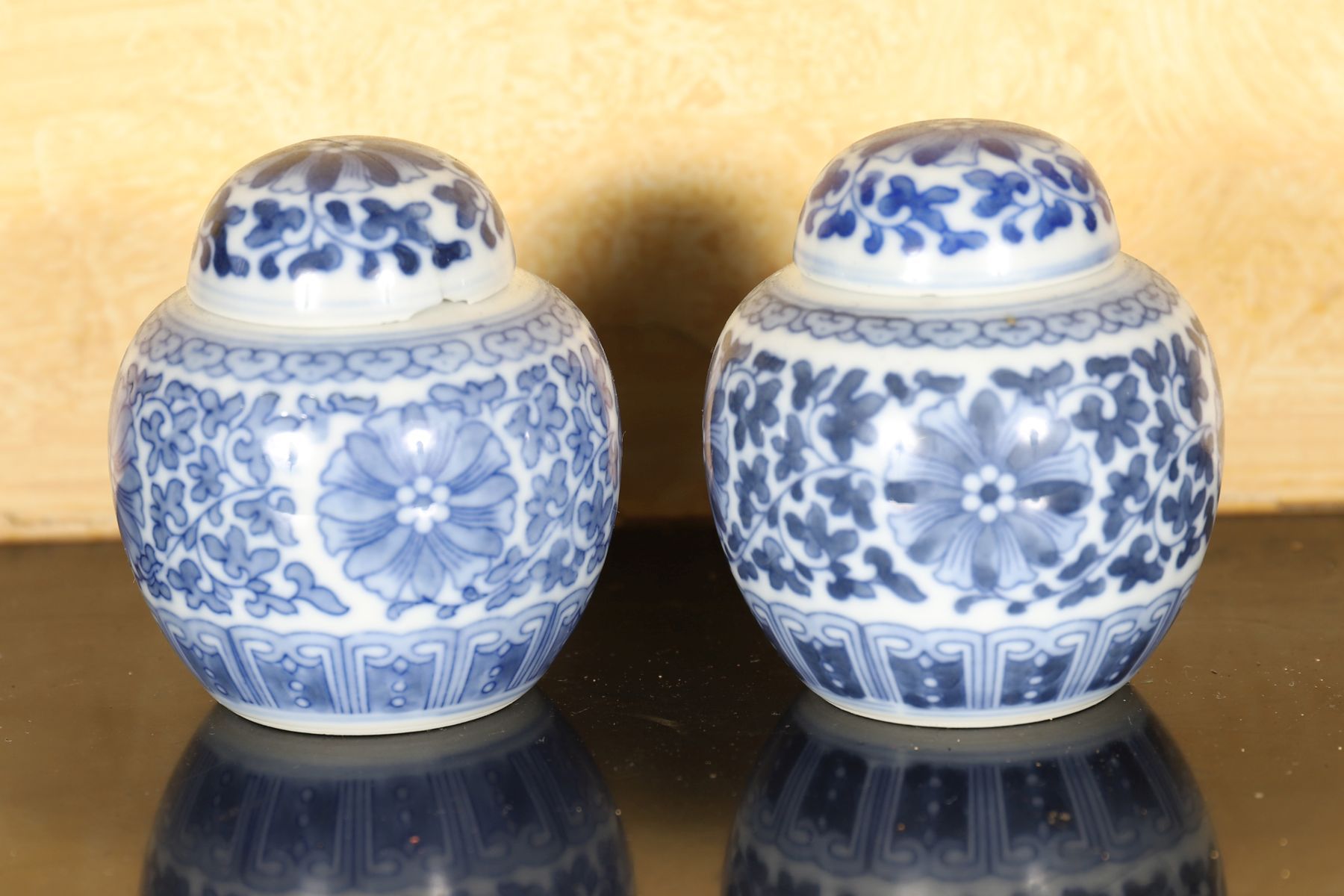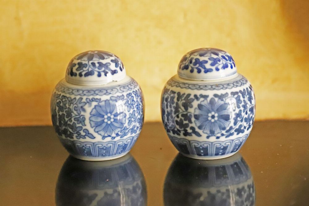 Lot 338 PAIR OF CHINESE BLUE AND WHITE MINIATURE GINGER JARS