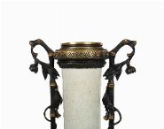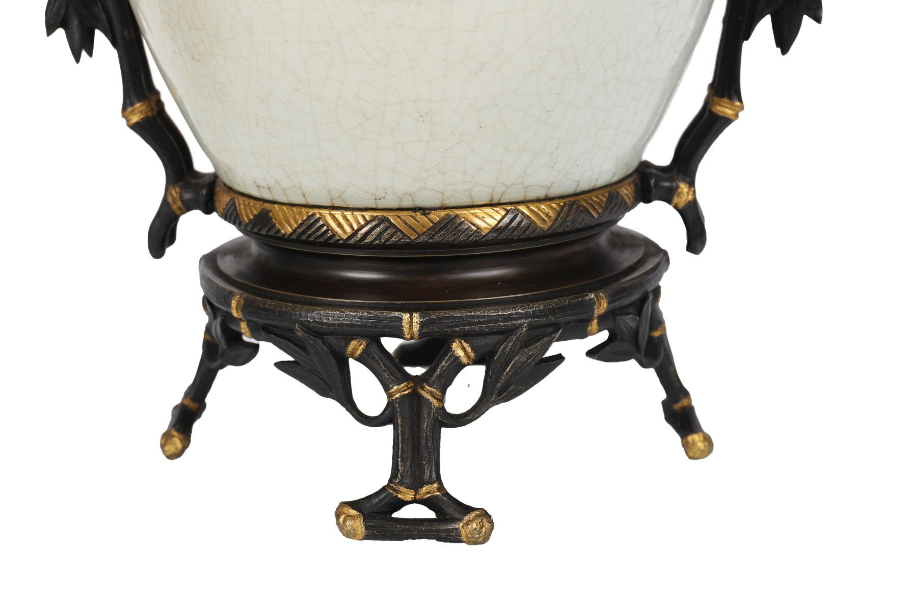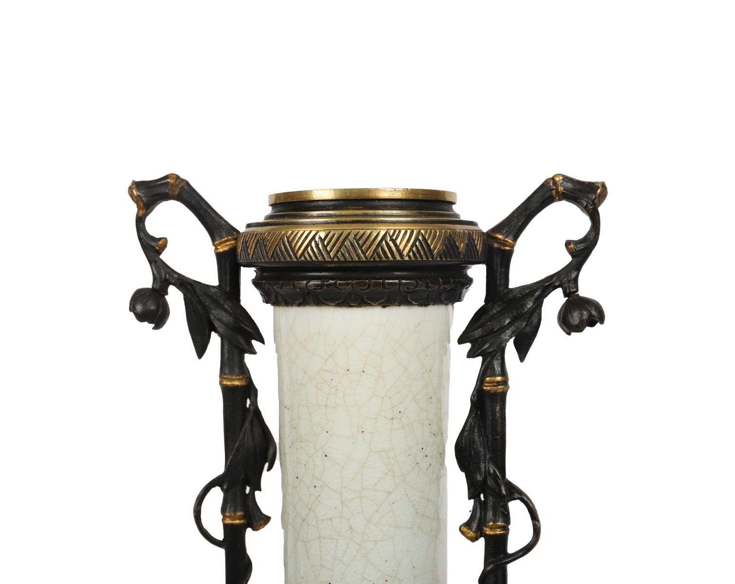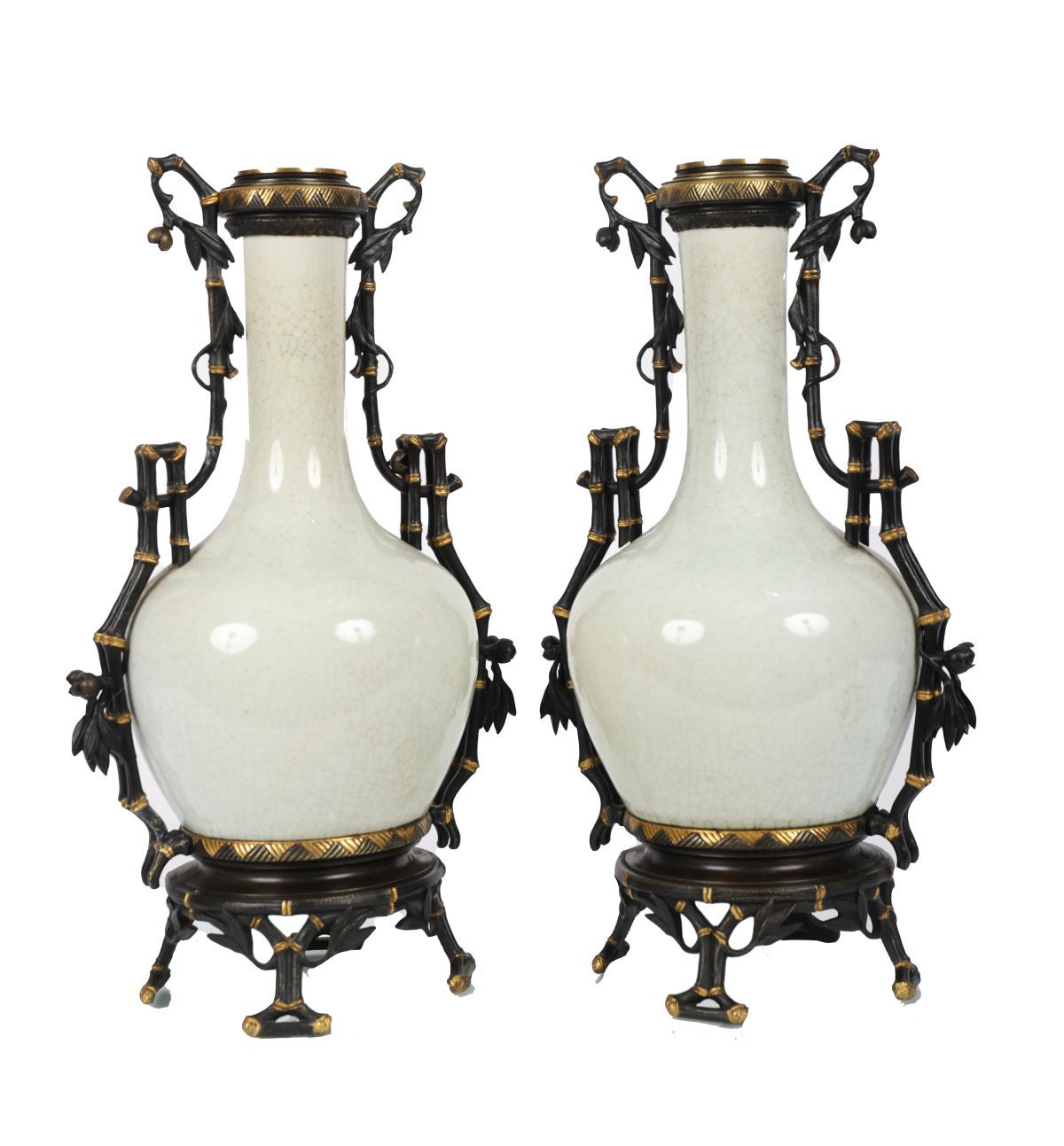 Lot 1331 PAIR OF CHINESE BRONZE AND PARCEL-GILT MOUNTED CRACKLE GLAZE VASES