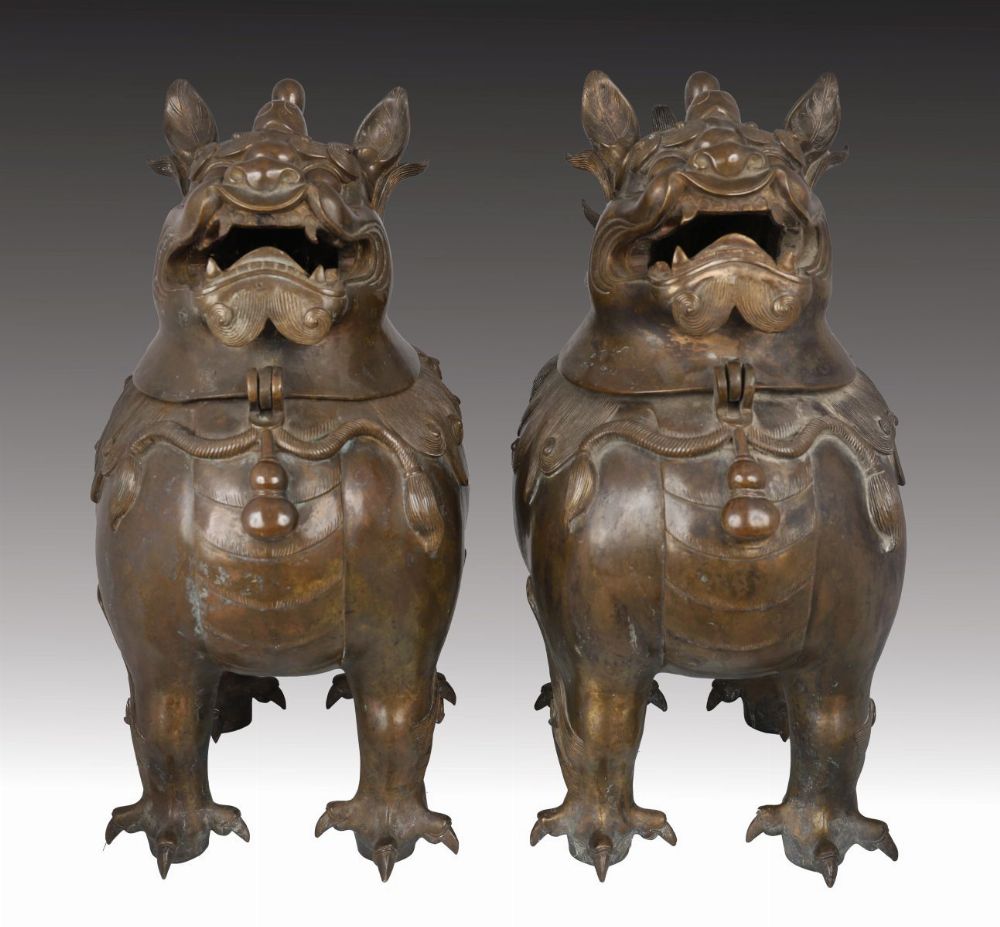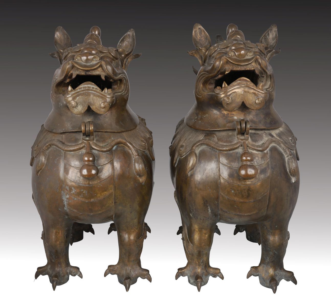 Lot 71 PAIR OF CHINESE BRONZE CENSERS