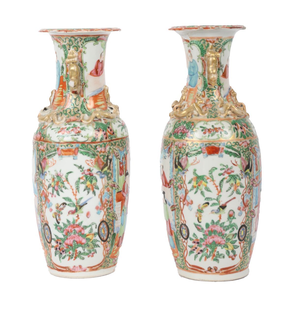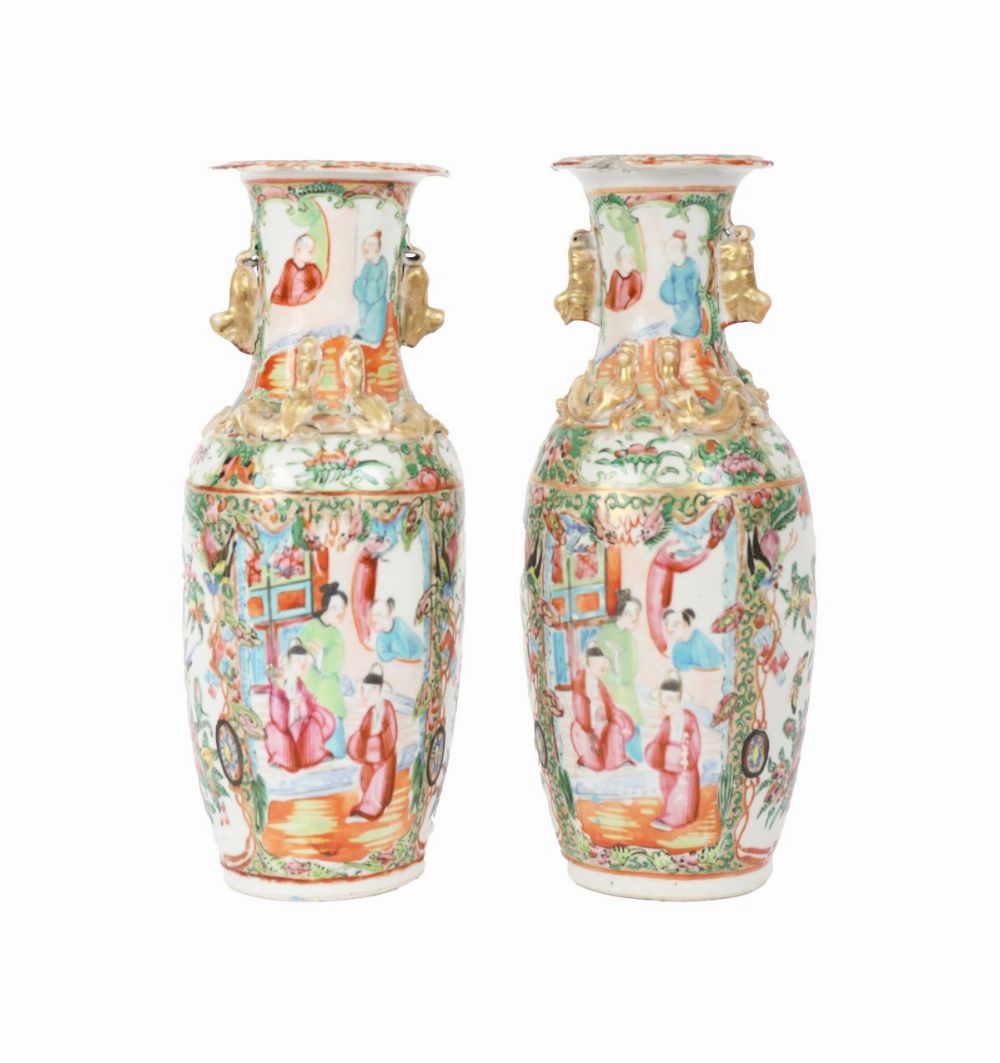 Lot 1320 PAIR OF CHINESE CANTON FAMILLE ROSE VASES, 19TH CENTURY