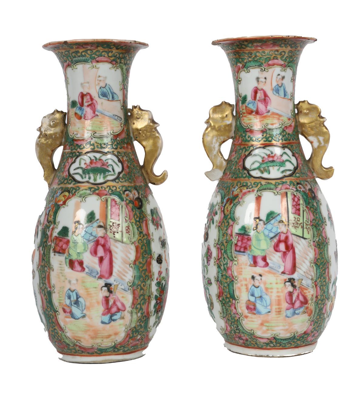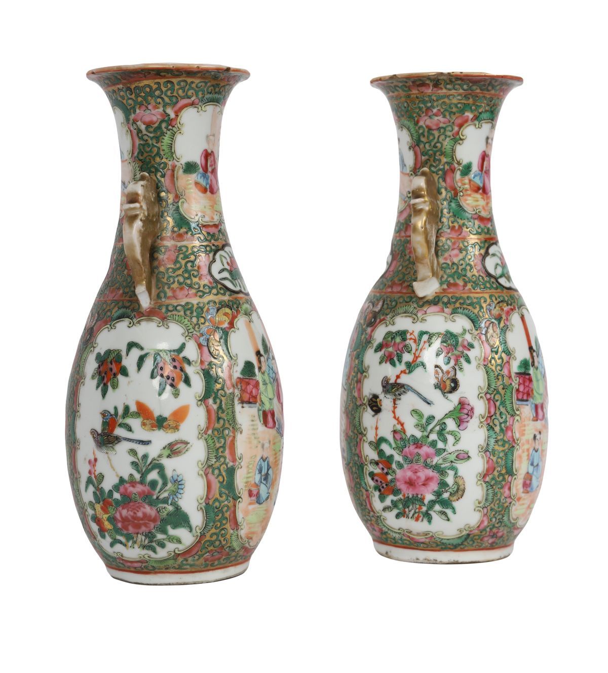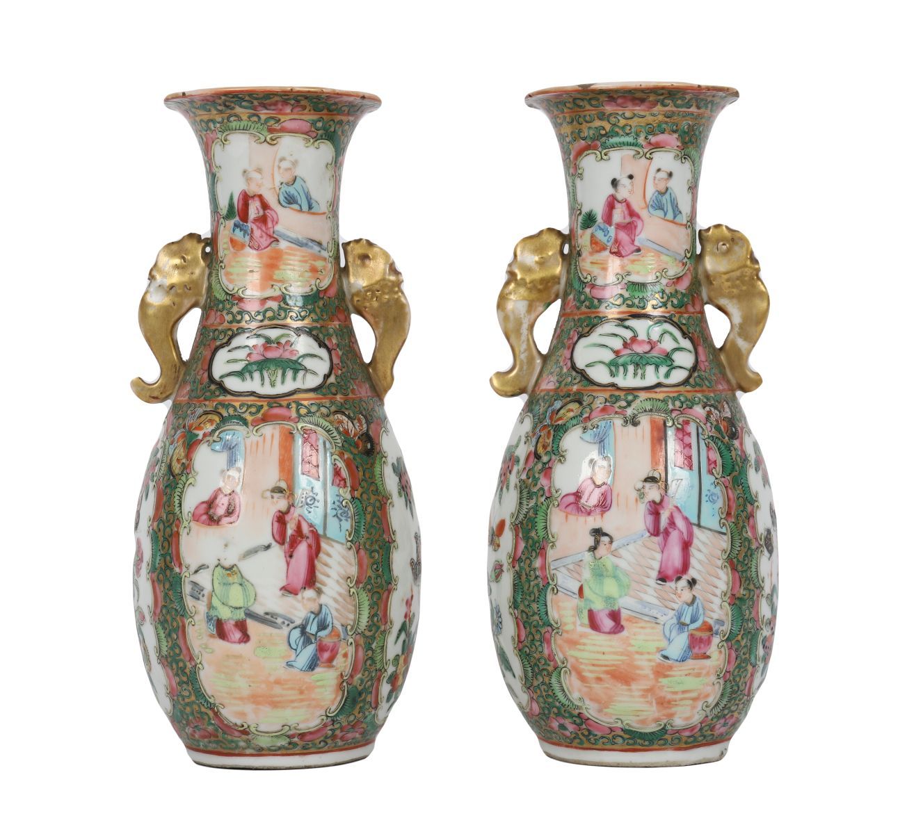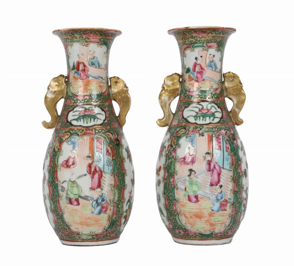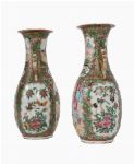 Lot 1354 PAIR OF CHINESE CANTON FAMILLE-ROSE VASES