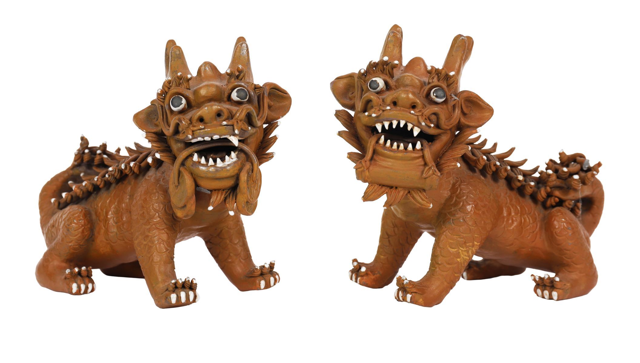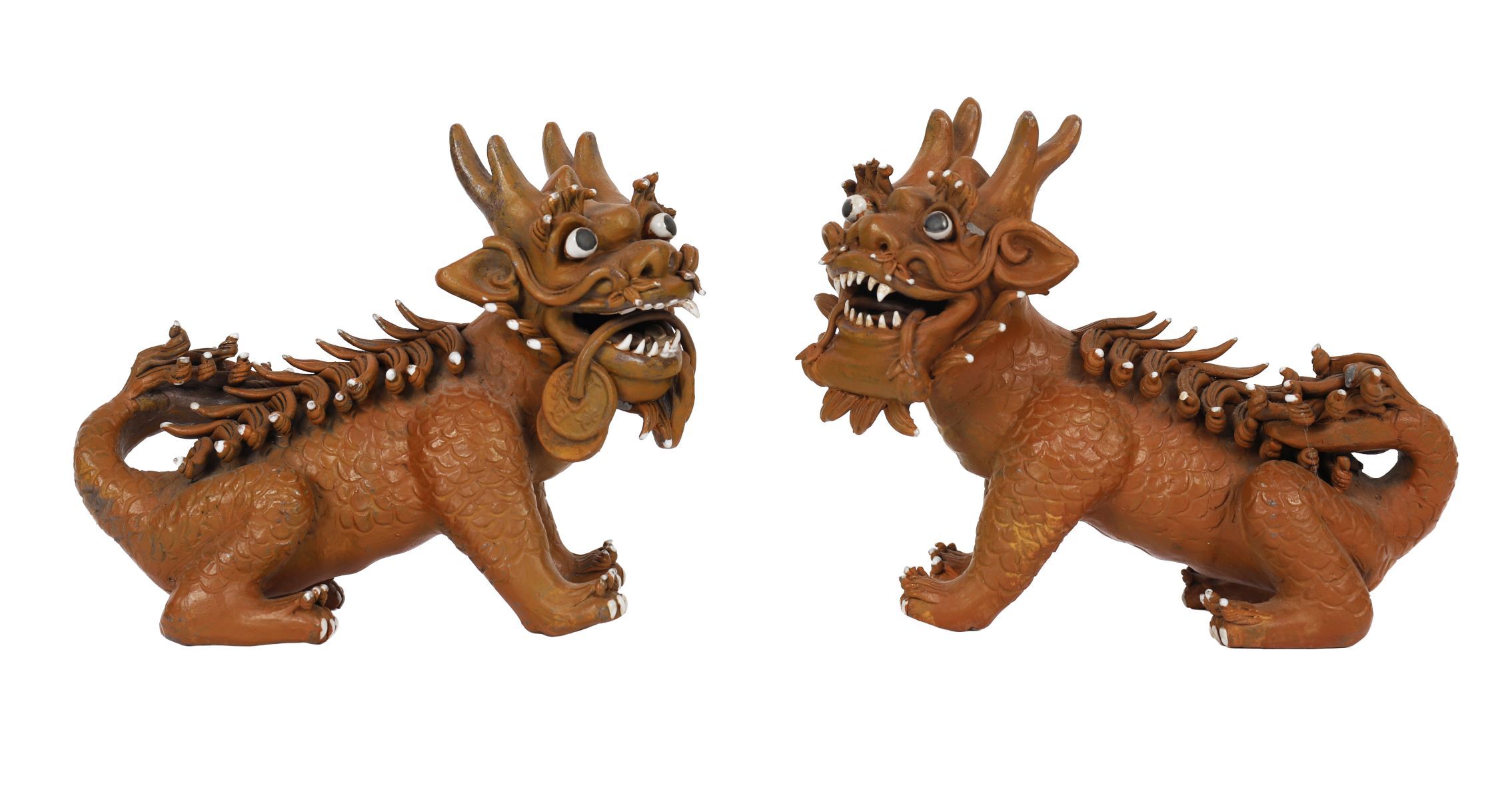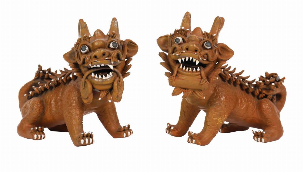 Lot 1366 PAIR OF CHINESE CERAMIC QILIN FIGURES