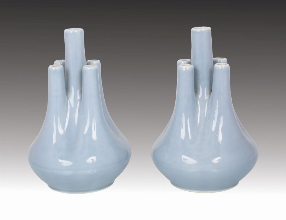 Lot 142 PAIR OF CHINESE CLAIR DE LUNE VASES