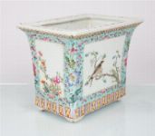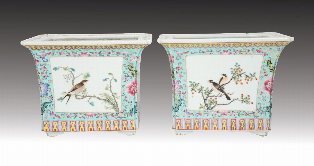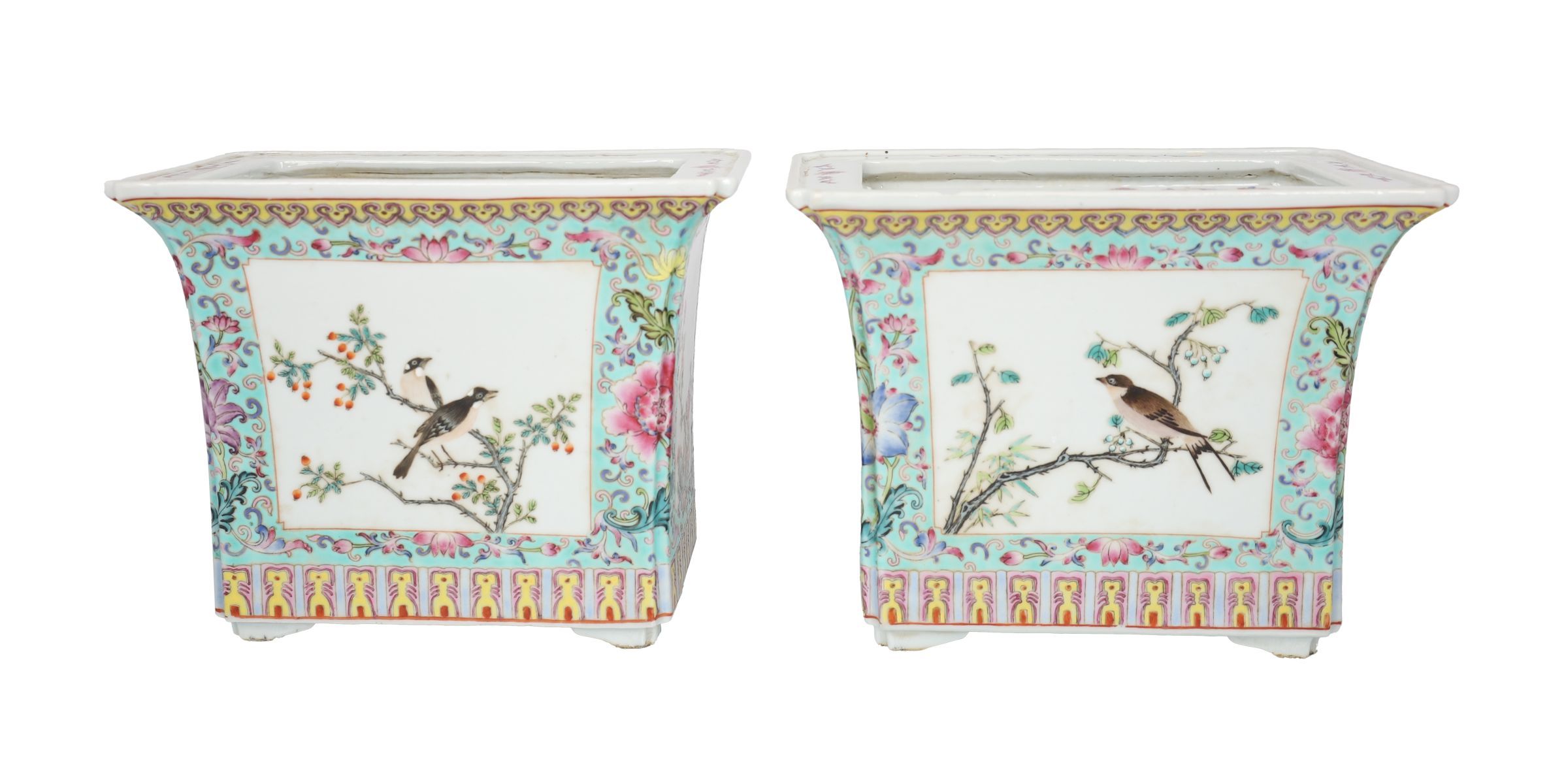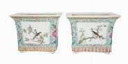 Lot 12 PAIR OF CHINESE FAMILLE ROSE ENAMELLED JARDINIERES