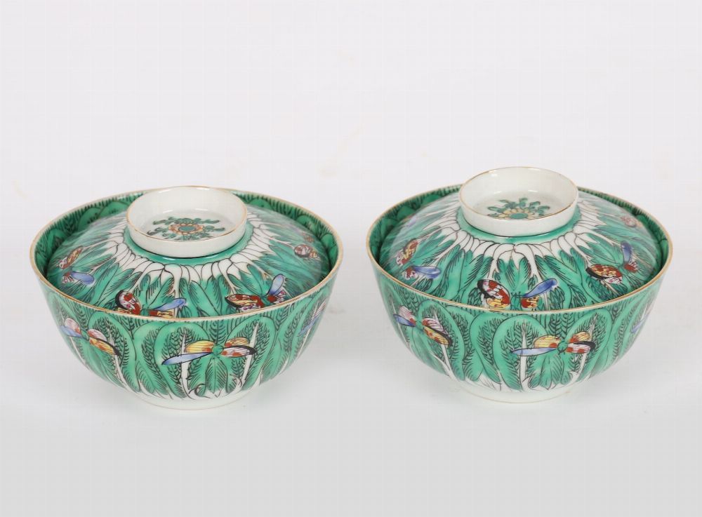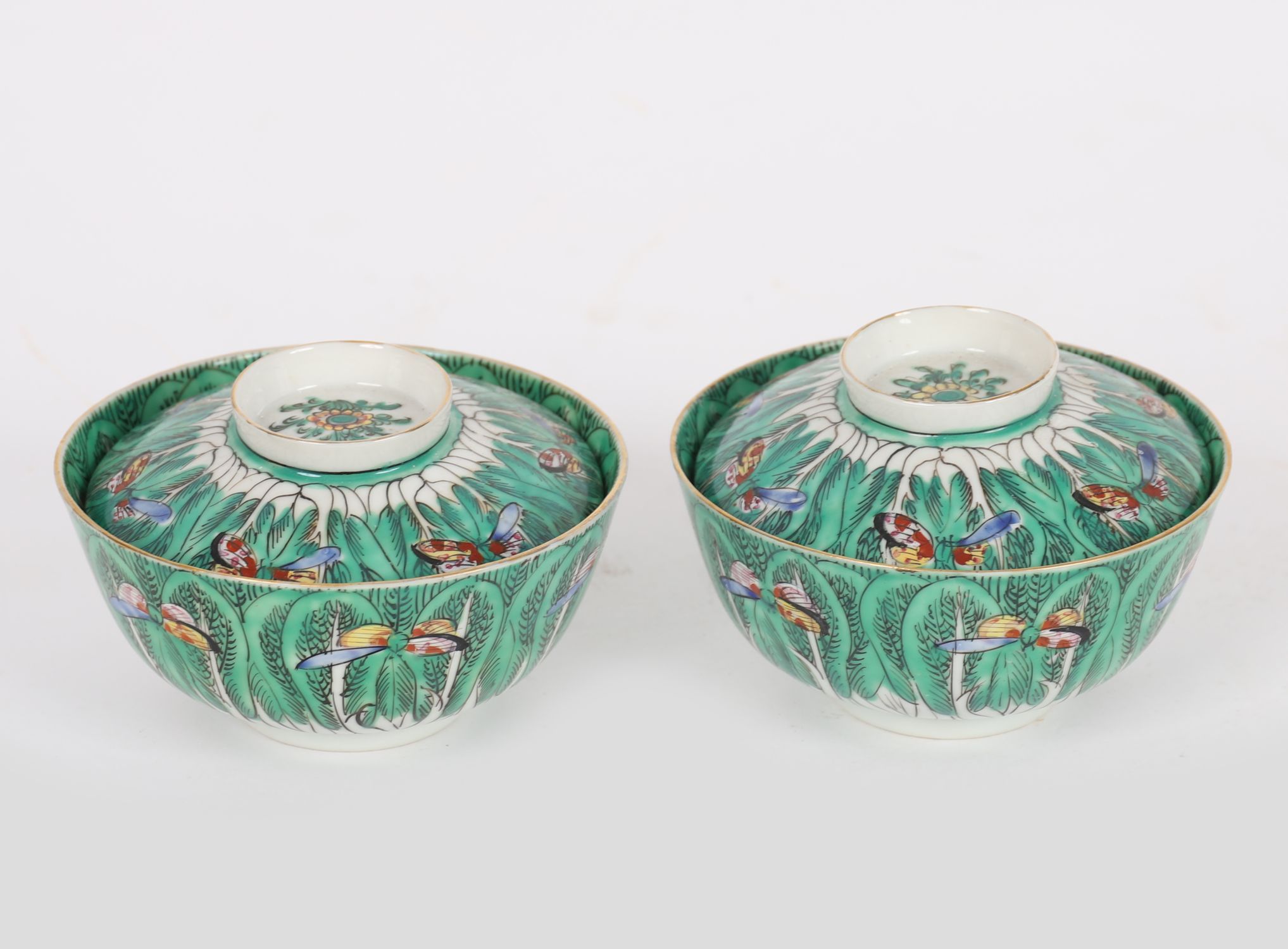 Lot 1260 PAIR OF CHINESE PORCELAIN TEA BOWLS AND COVERS