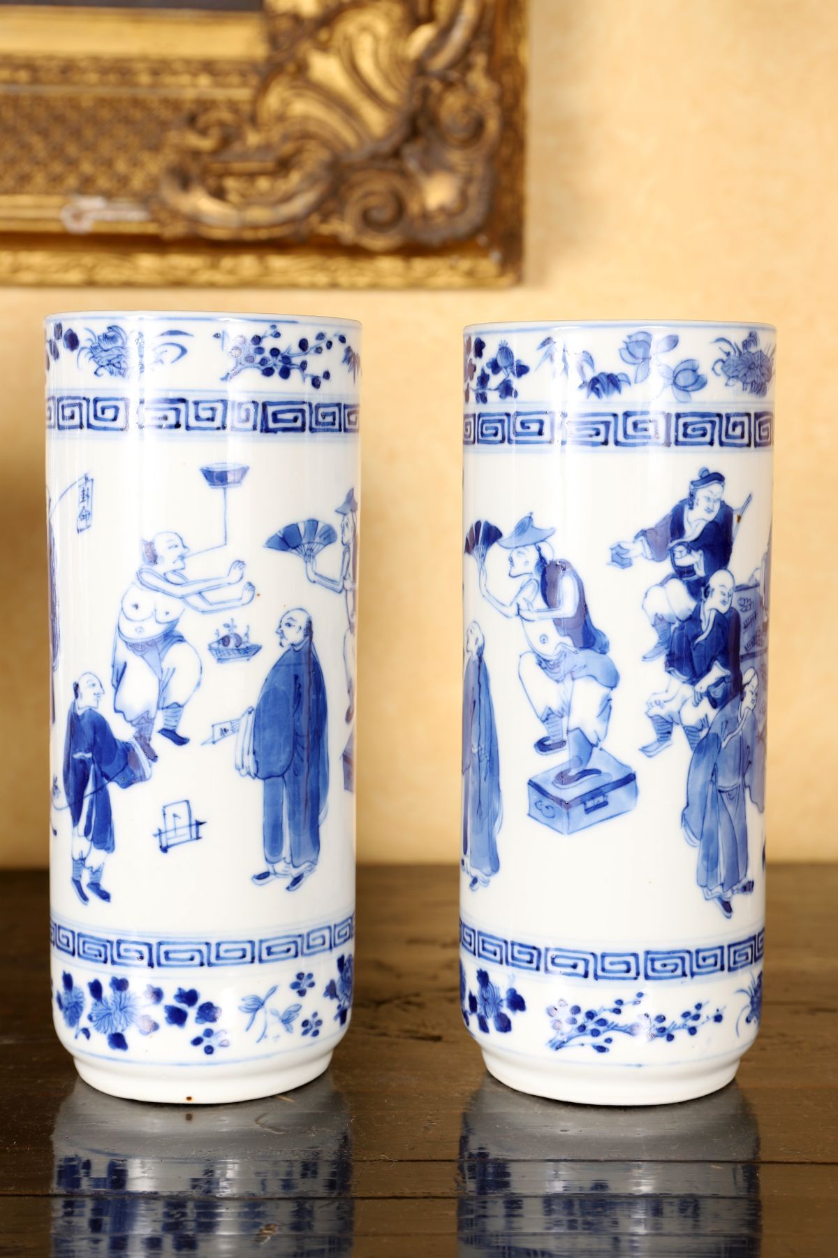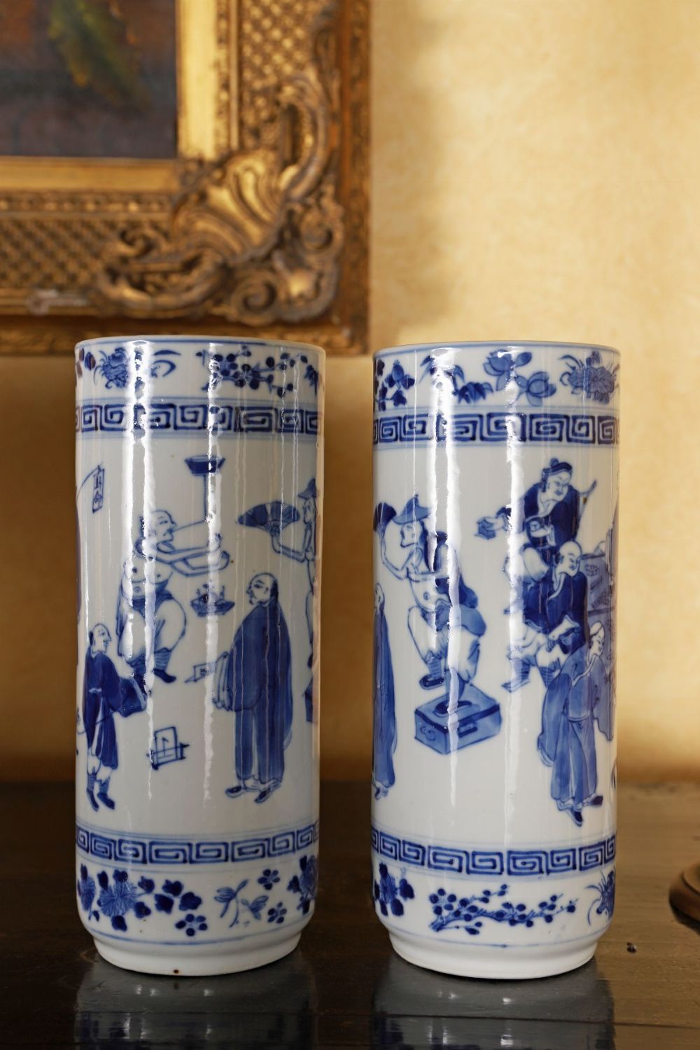 Lot 349 PAIR OF CHINESE QING BLUE AND WHITE SLEEVE VASES