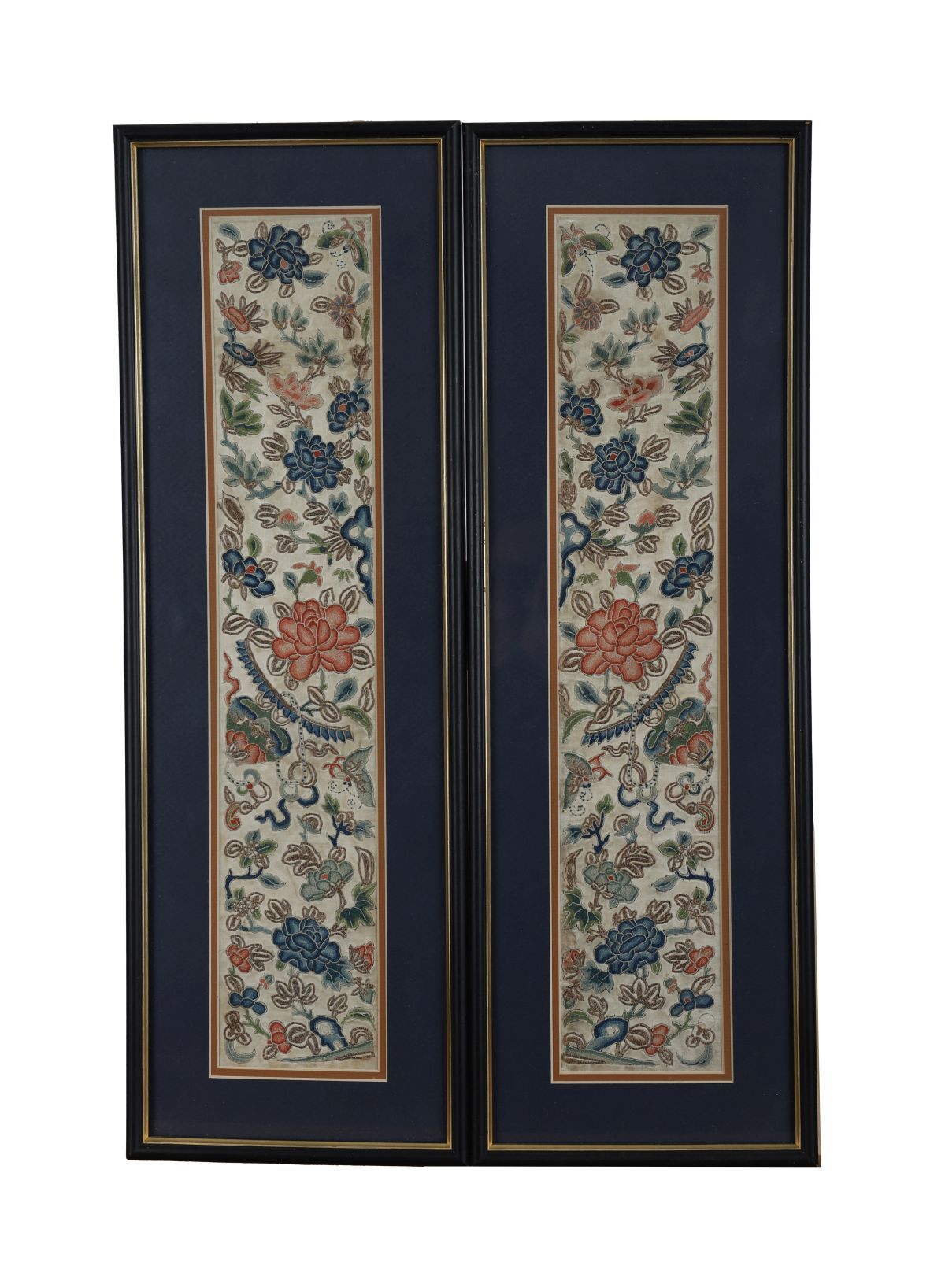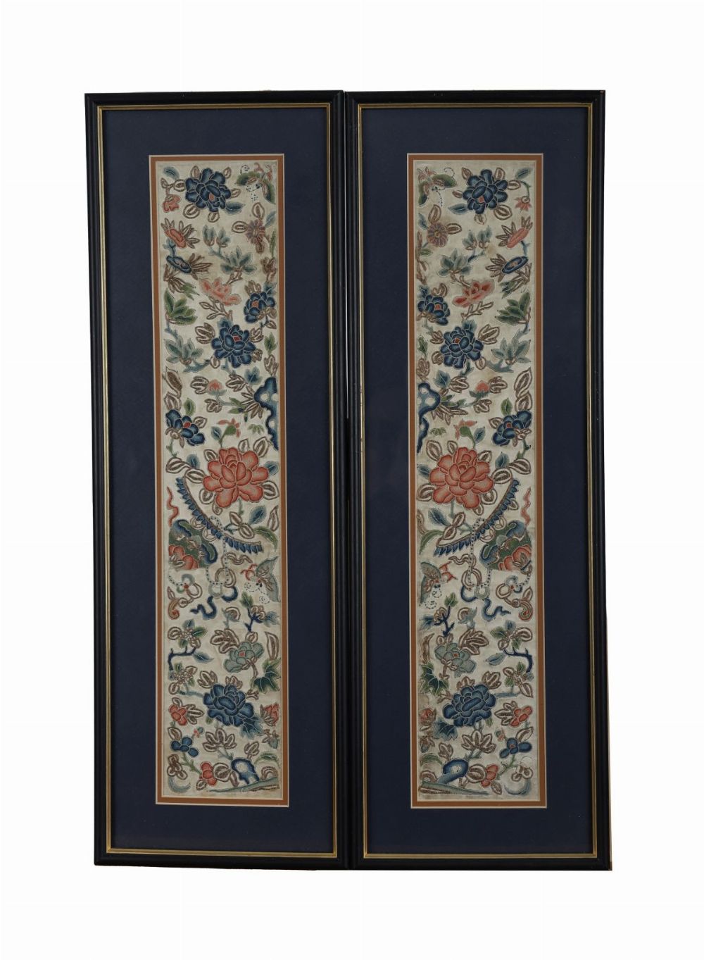 Lot 734 PAIR OF CHINESE SILK EMBROIDERY PANELS