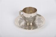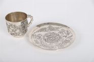 Lot 1219 PAIR OF CHINESE SILVER DEMITASSE CUPS AND SAUCERS