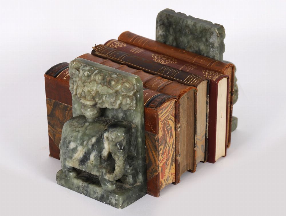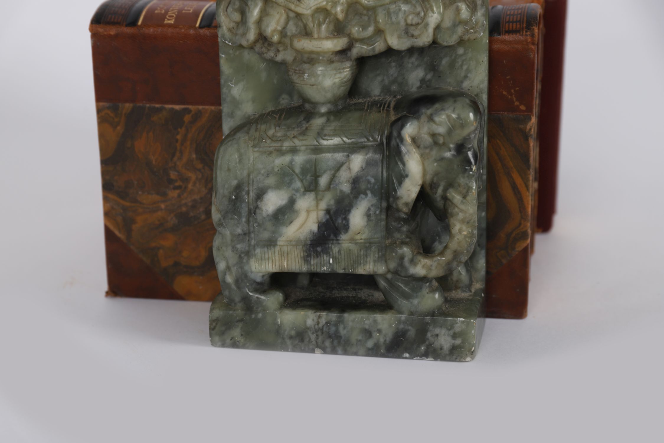 Lot 1203 PAIR OF CHINESE SOAPSTONE ELEPHANT BOOKENDS