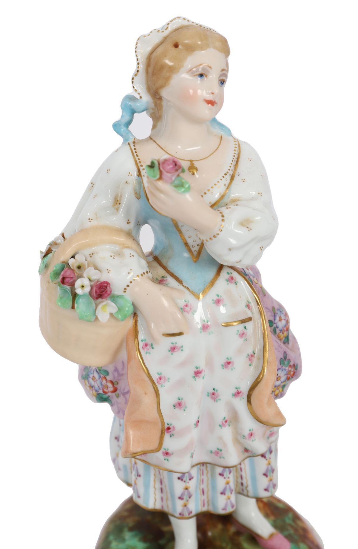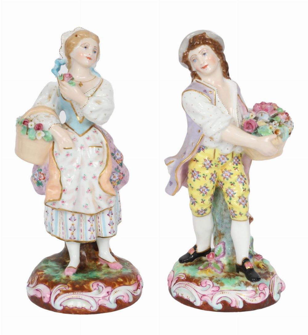 Lot 1362 PAIR OF CONTINENTAL PORCELAIN FIGURES, MALE AND FEMALE WITH BASKETS OF FLOWERS