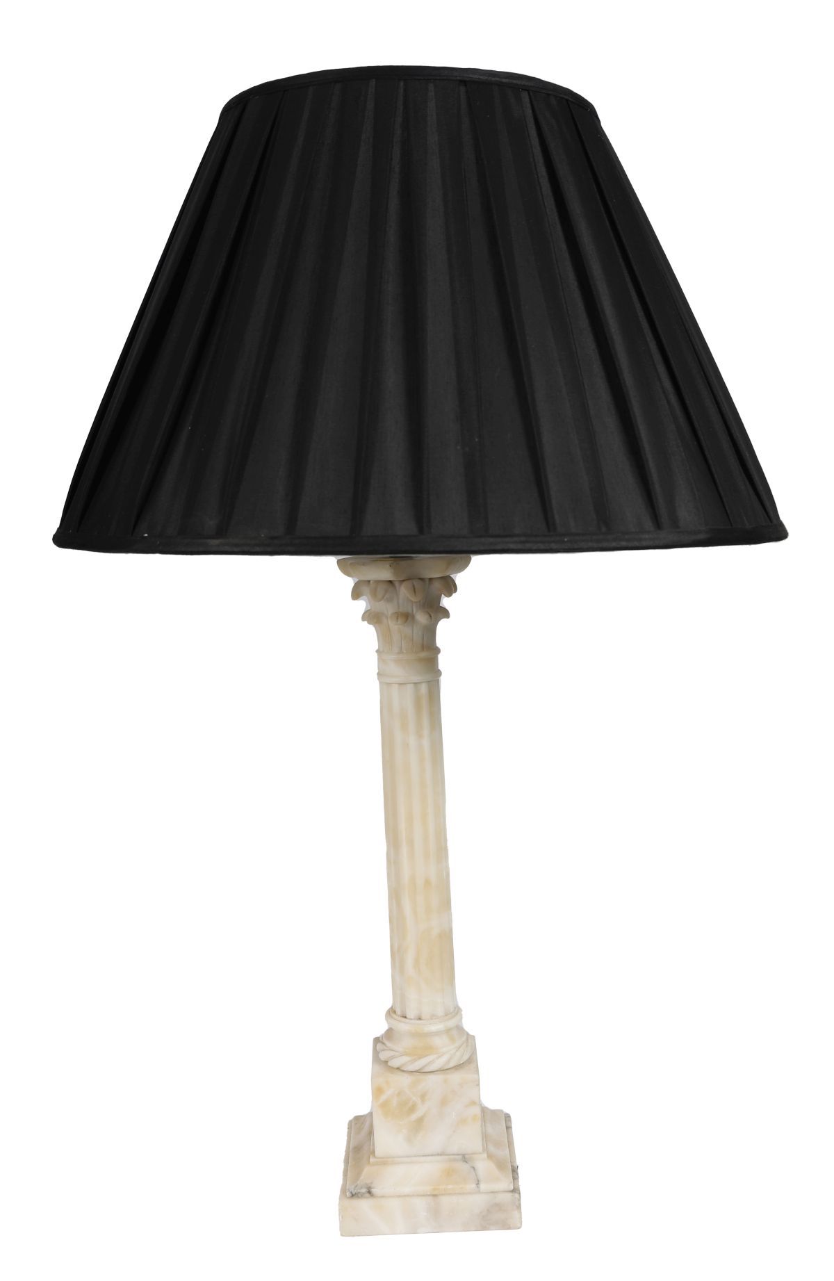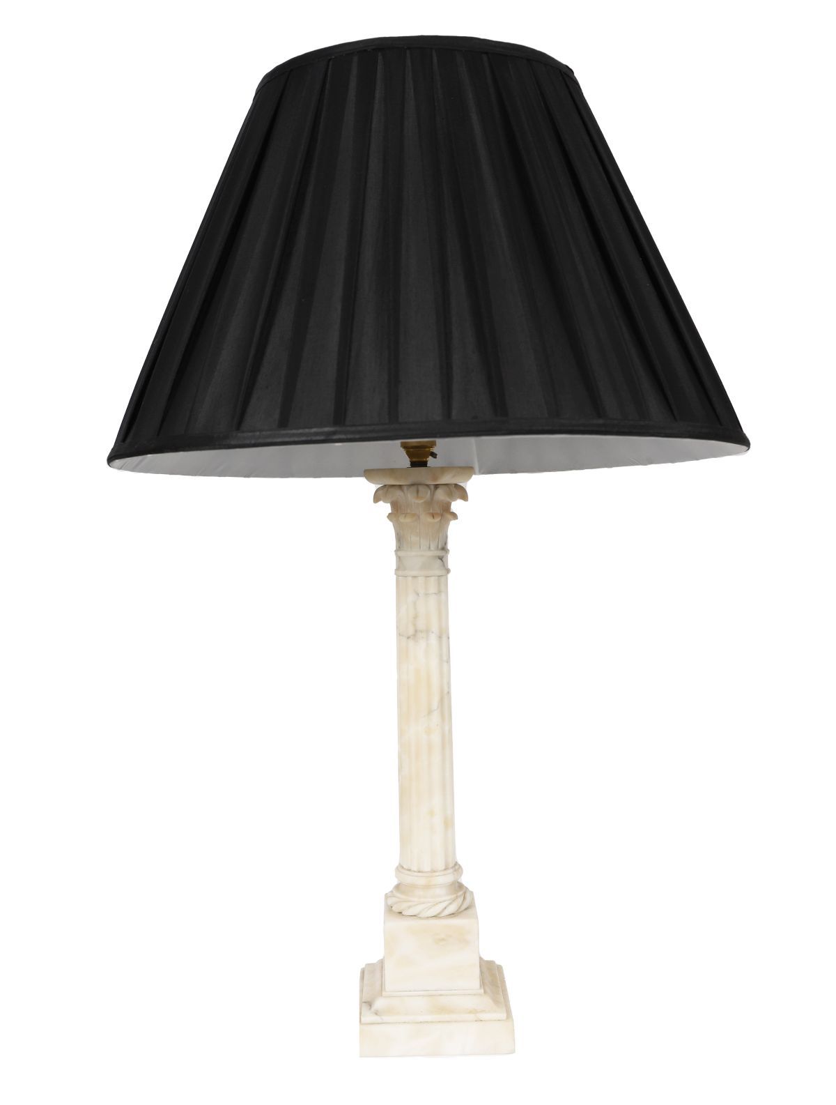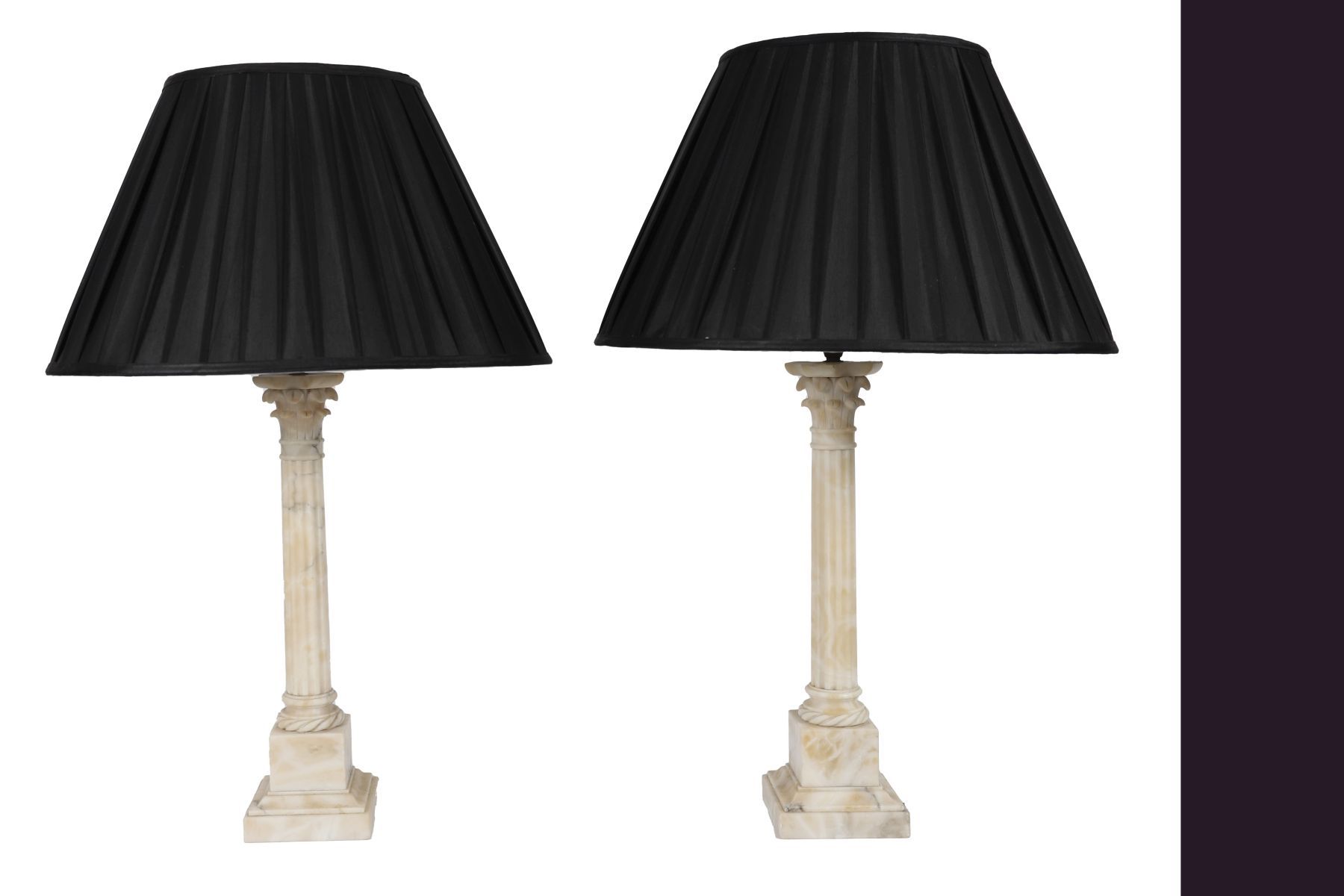 Lot 1395 PAIR OF CORINTHIAN-PILLARED MARBLE TABLE LAMPS WITH SHADES