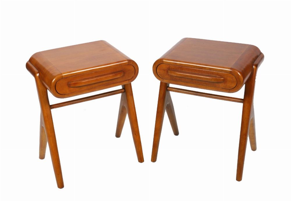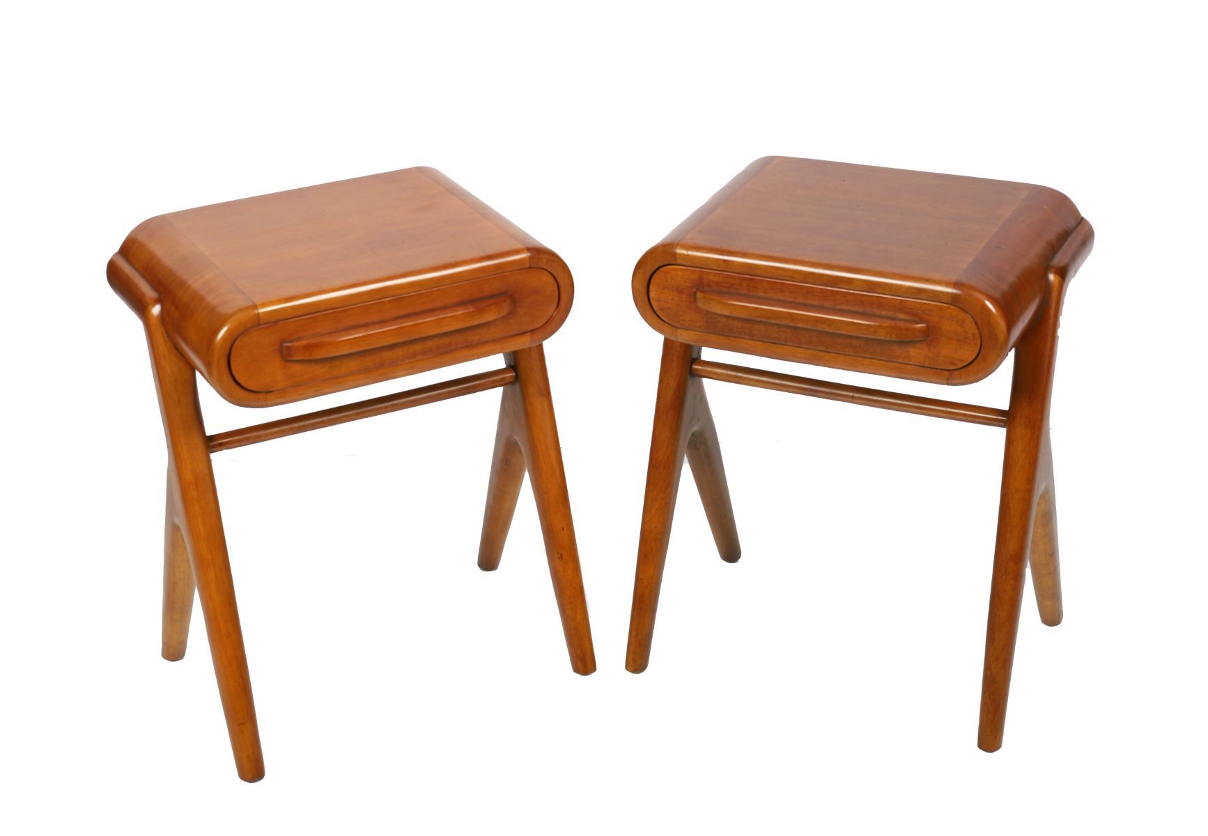 Lot 914 PAIR OF DESIGNER FRUITWOOD BEDSIDE OR LAMP TABLES