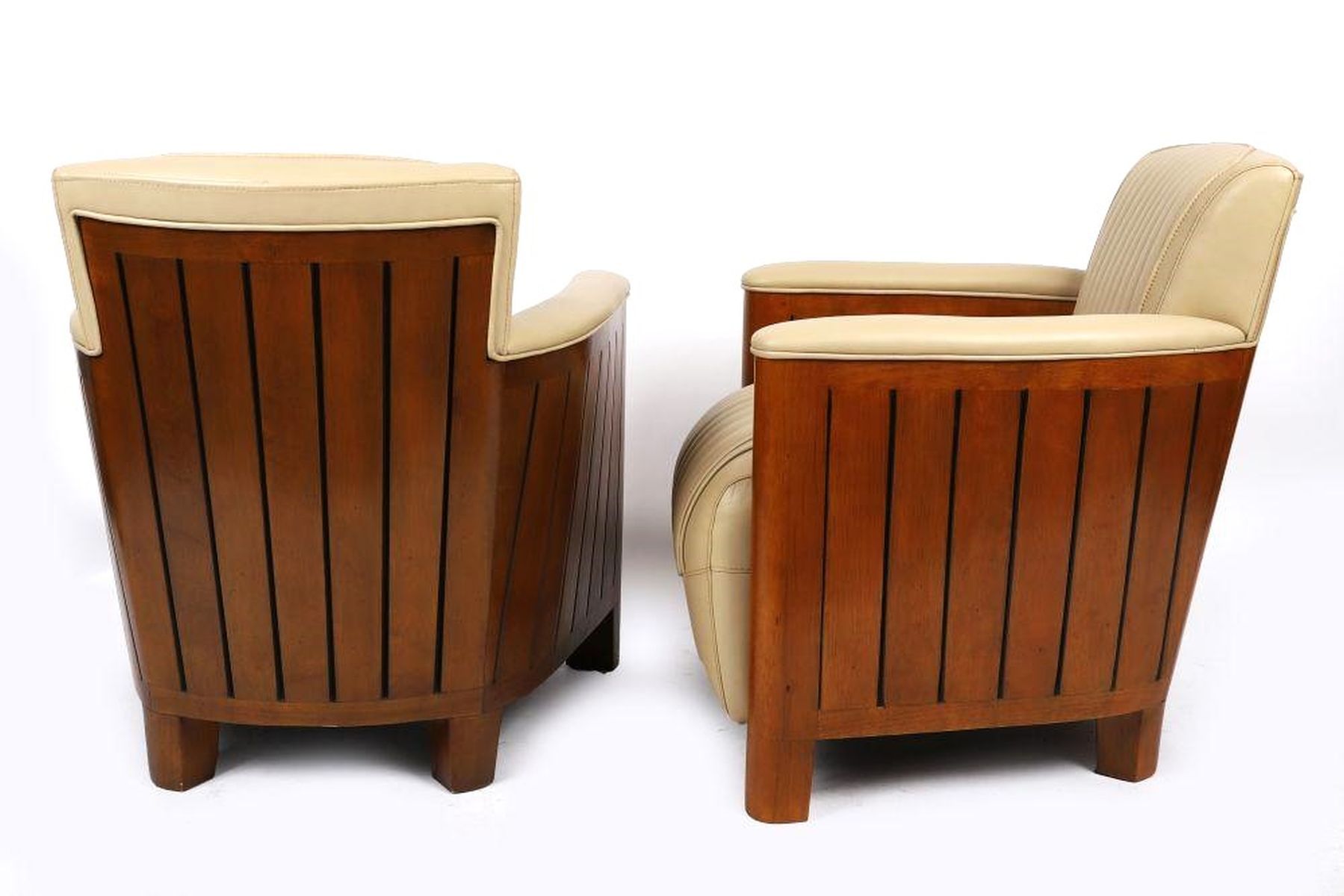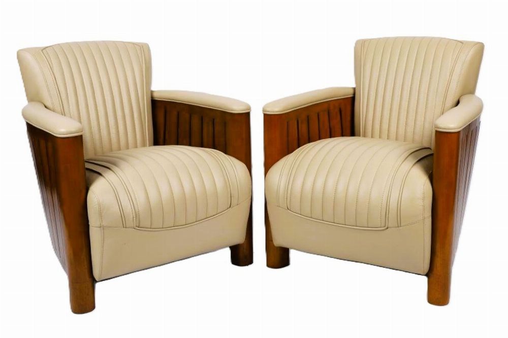 Lot 1038 PAIR OF DESIGNER HIDE-UPHOLSTERED AND FRUITWOOD CLUB ARMCHAIRS