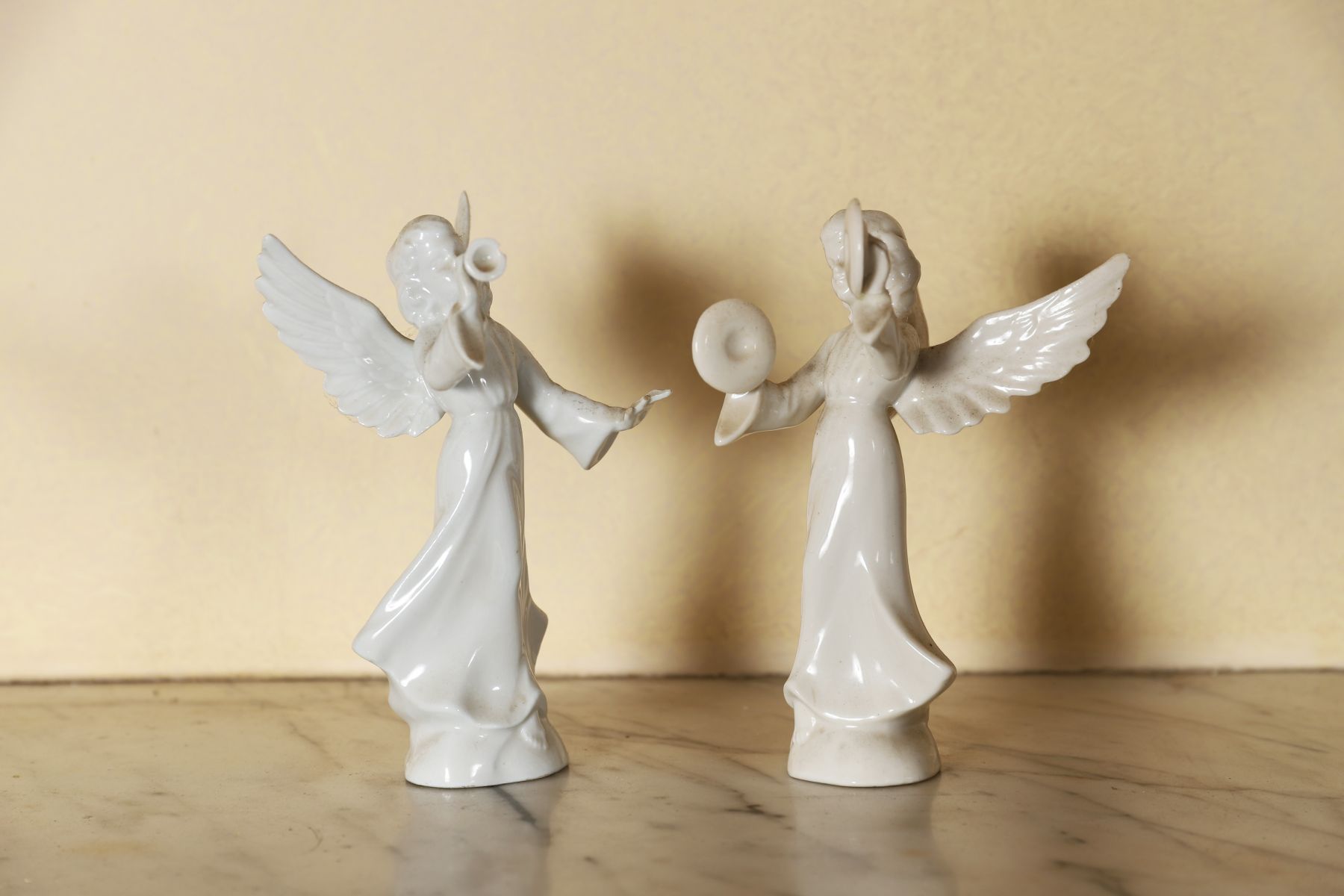 Lot 43 PAIR OF DRESDEN BLANC DE CHINE PORCELAIN ANGELS