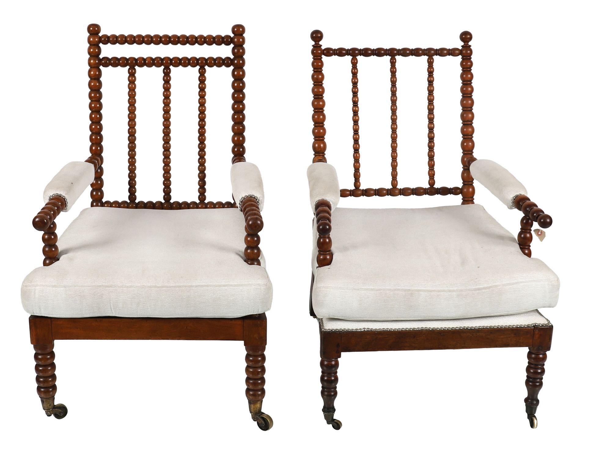 Lot 1658 PAIR OF DUBLIN 19TH-CENTURY MAHOGANY BOBBIN ARMCHAIRS
