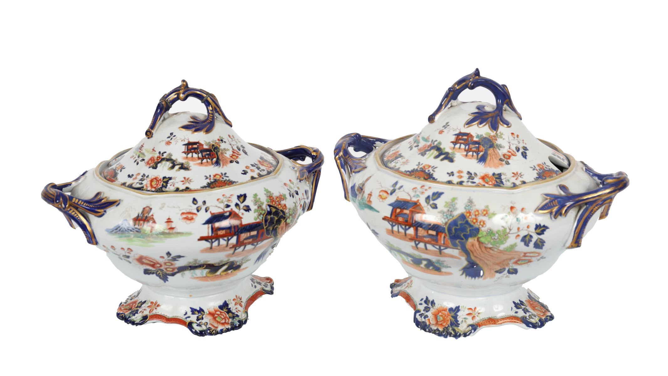 Lot 20 PAIR OF EARLY 19TH-CENTURY CAREYS IRONSTONE TUREENS AND COVERS