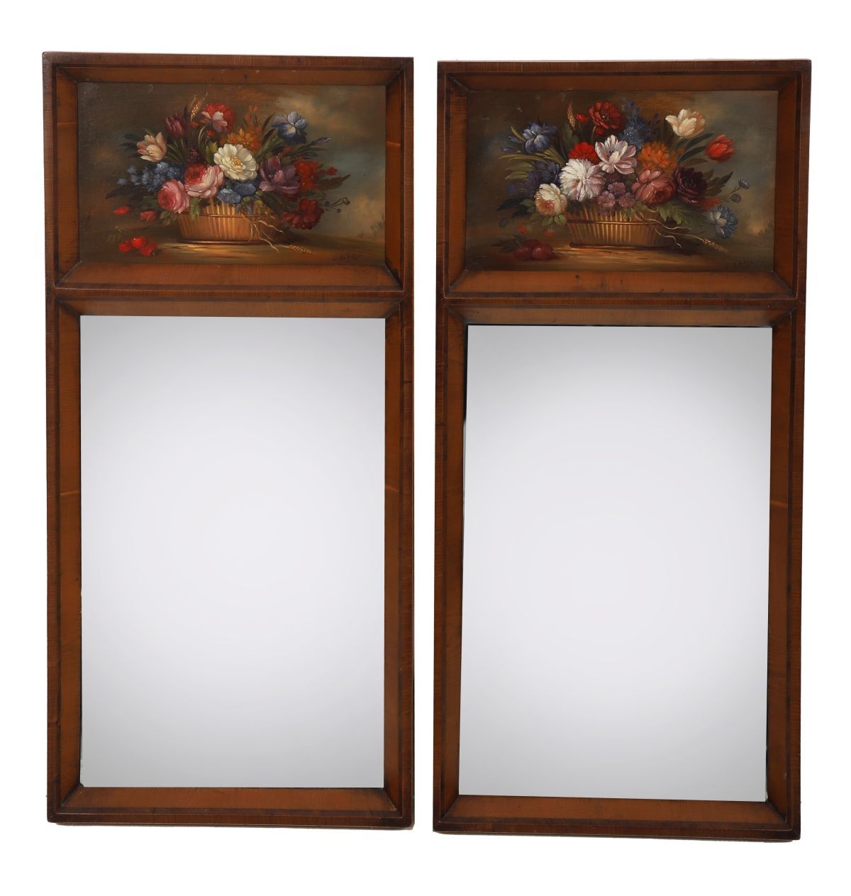 Lot 1144 PAIR OF EDWARDIAN FRUITWOOD AND PAINTED PIER MIRRORS