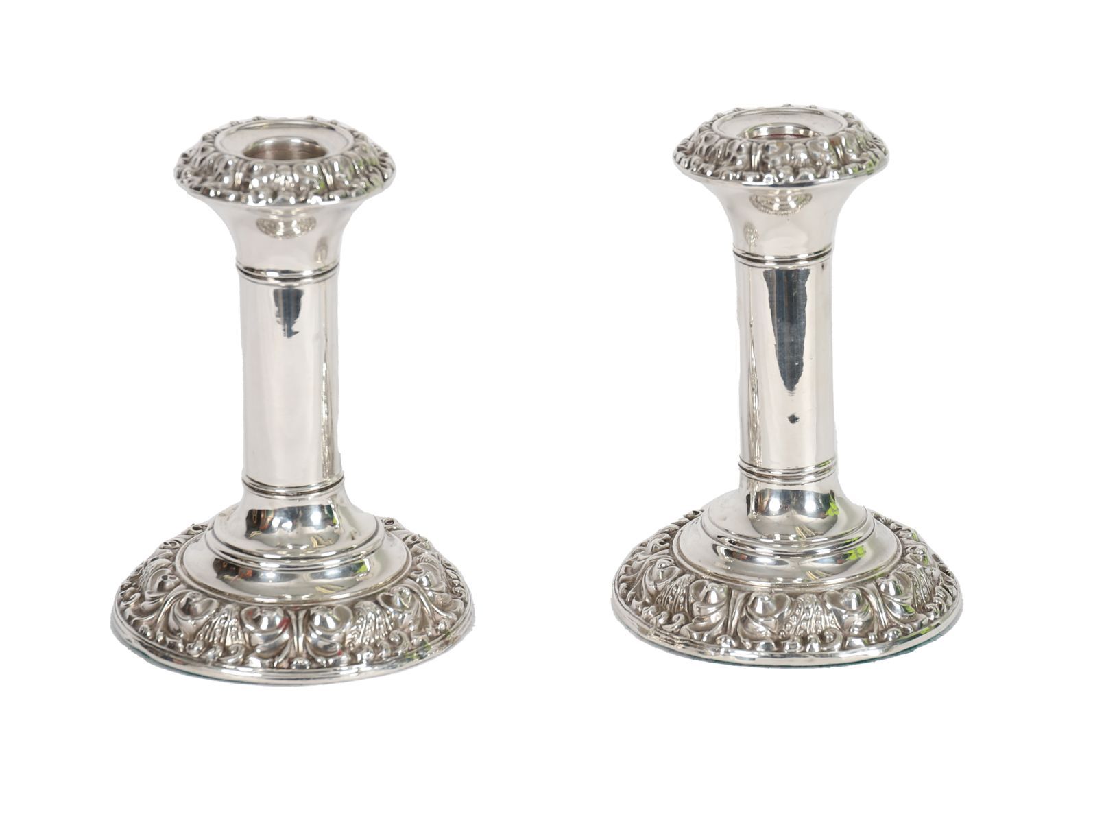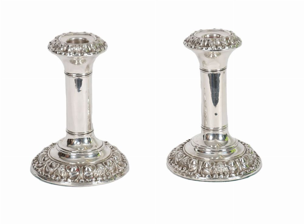 Lot 580 PAIR OF EDWARDIAN SILVER CANDLESTICKS