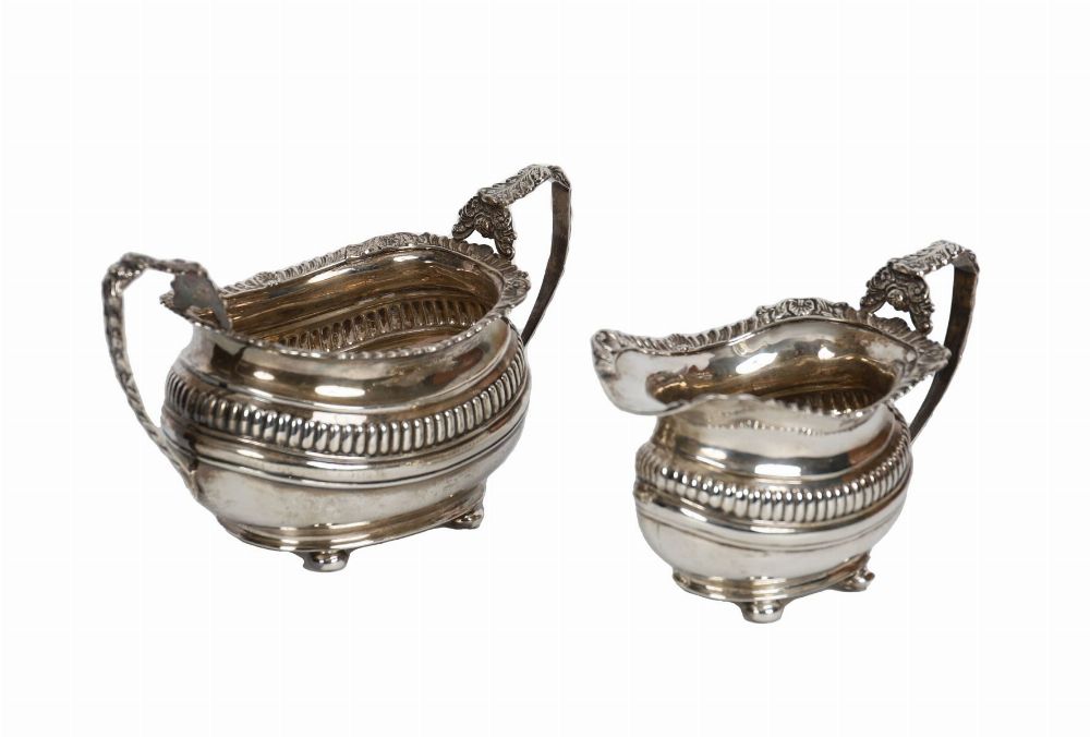 Lot 809 PAIR OF EDWARDIAN SILVER CREAM JUG AND SUGAR BOWL