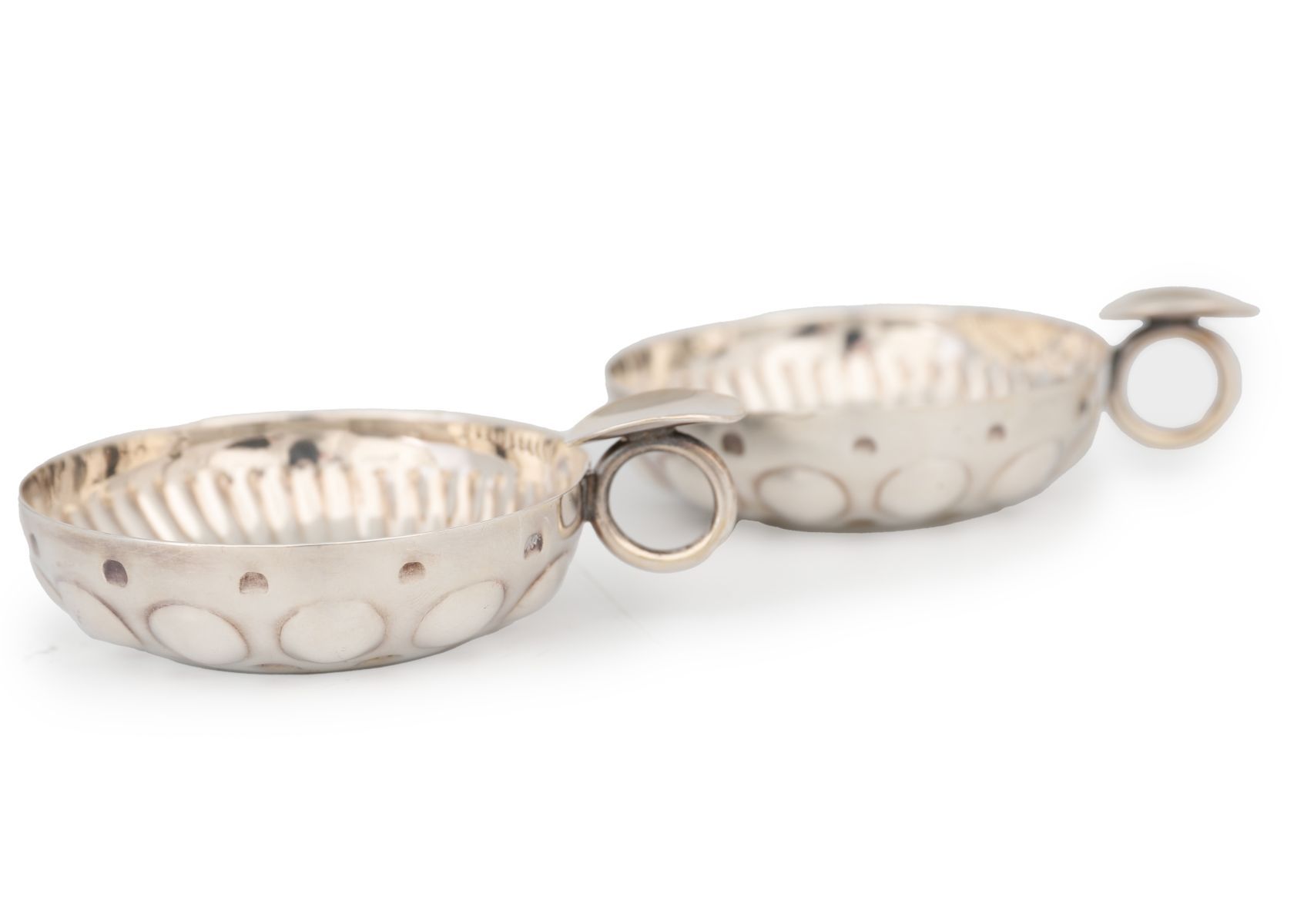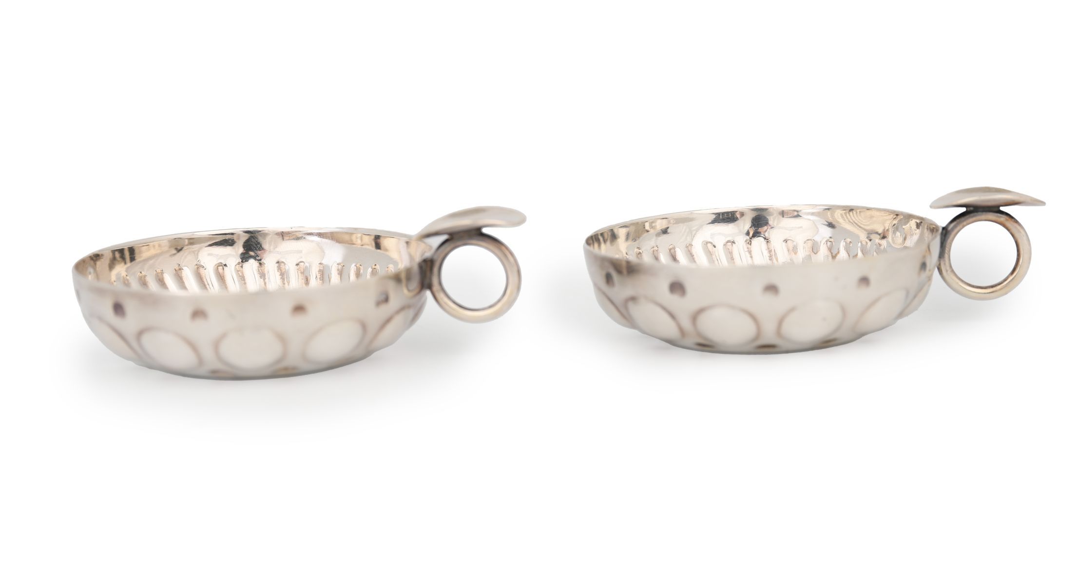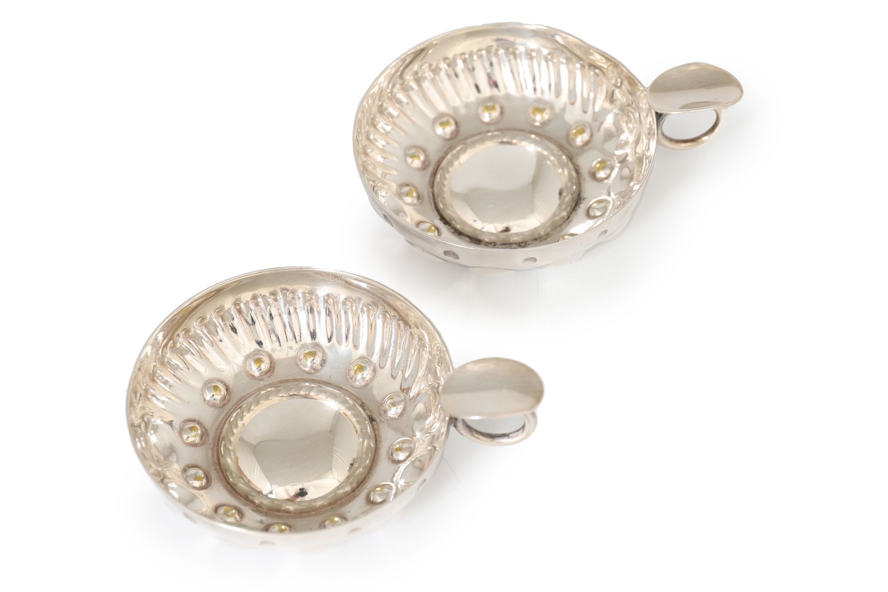 Lot 472 PAIR OF FRENCH SILVER PLATED WINE TASTING CUPS "TASTEVIN"