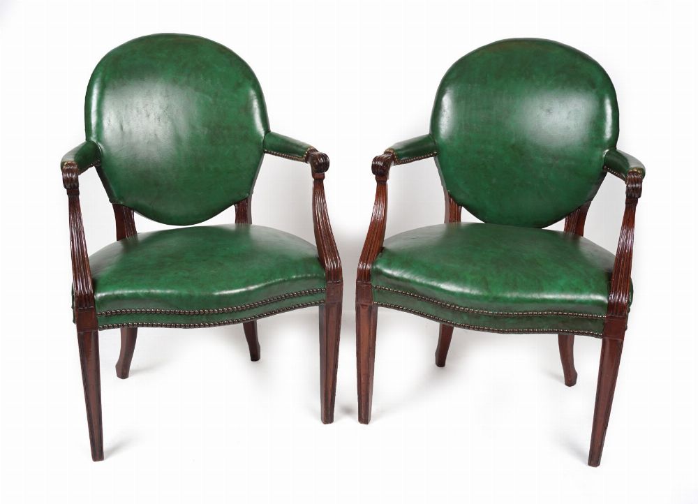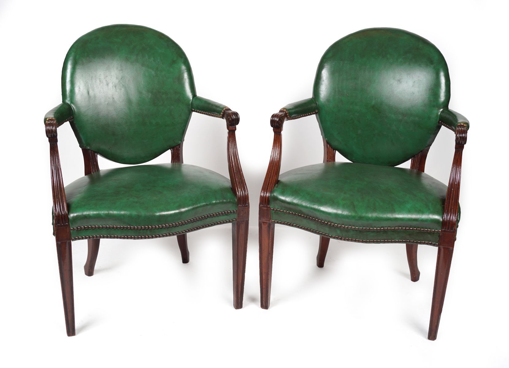 Lot 352 PAIR OF GEORGE III LEATHER LIBRARY ARMCHAIRS
