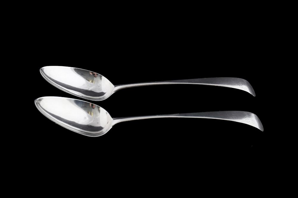 Lot 858 PAIR OF GEORGE III SILVER OLD ENGLISH PATTERN BASTING SPOONS