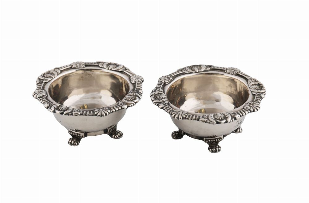 Lot 819 PAIR OF GEORGE IV IRISH SILVER SALT CELLARS, DUBLIN 1820