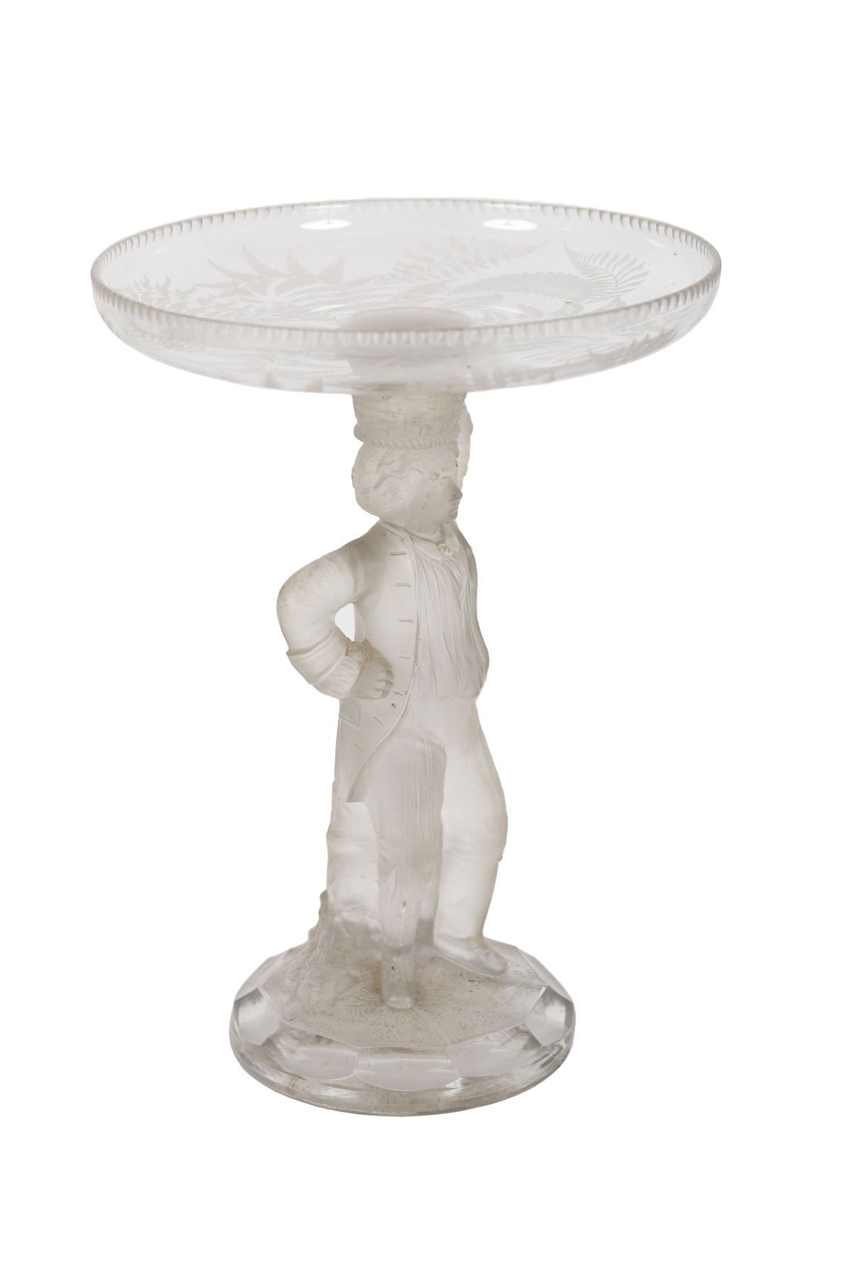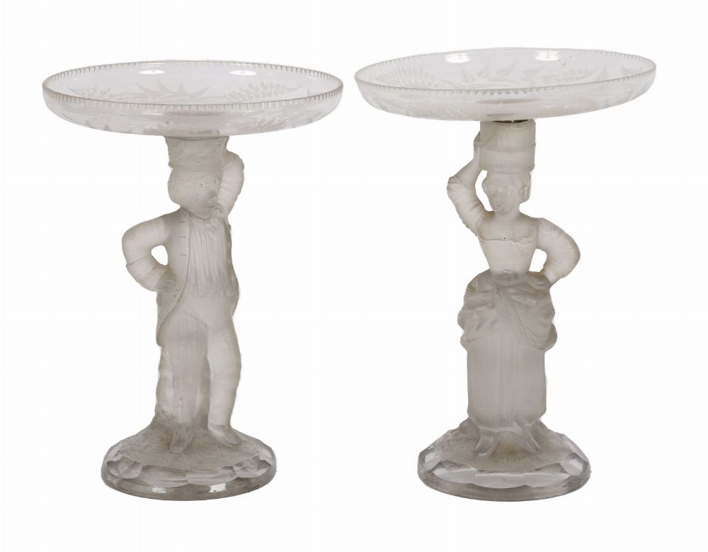 Lot 1104 PAIR OF GERMAN FROSTED GLASS FIGURAL TAZZA