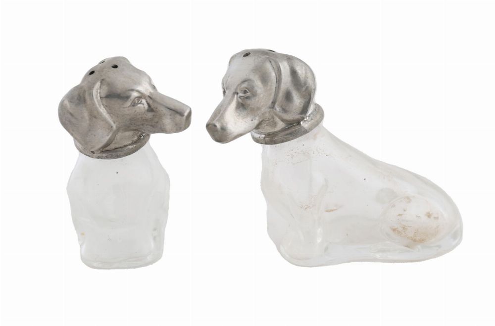 Lot 560 PAIR OF GERMAN SILVER AND GLASS DOG-FORM SALTS
