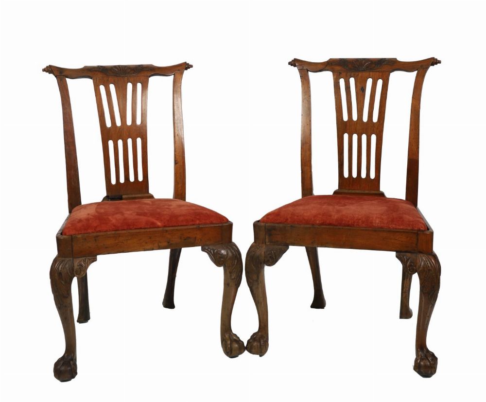 Lot 179 PAIR OF IRISH 18TH-CENTURY CARVED MAHOGANY SIDE CHAIRS