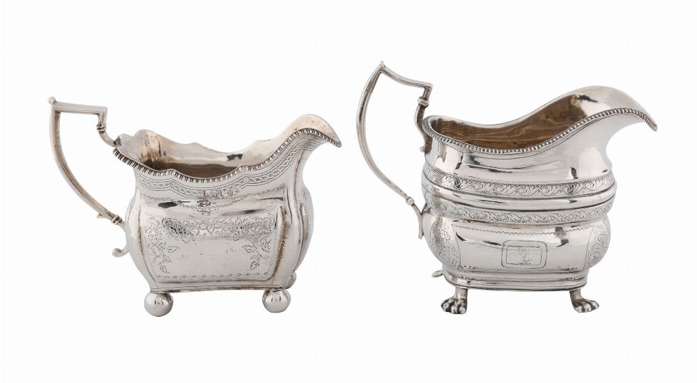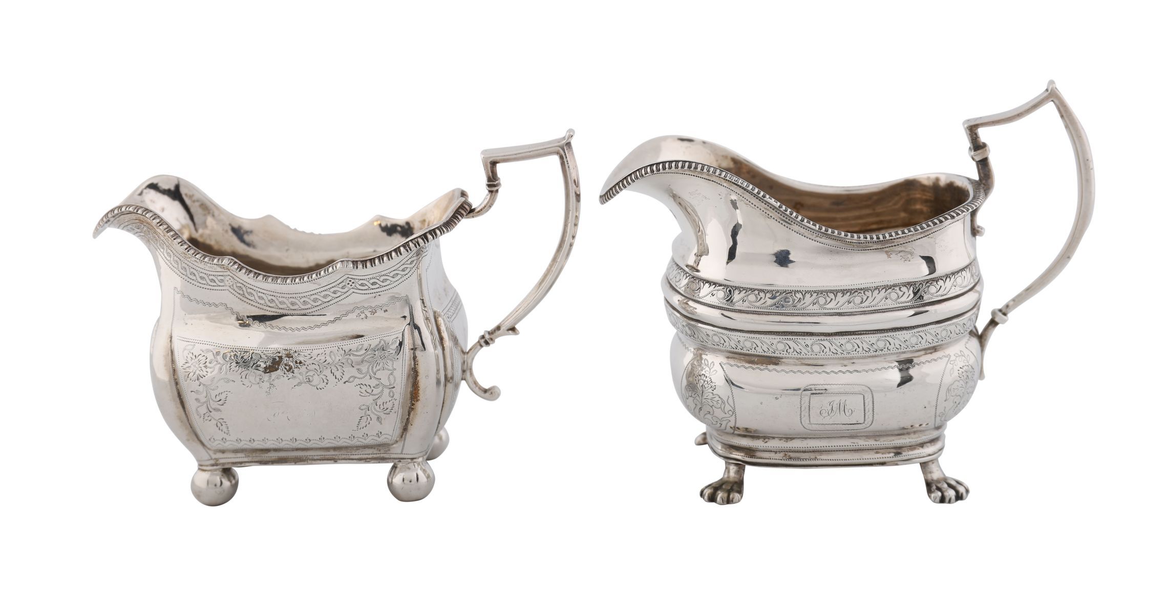 Lot 840 PAIR OF IRISH GEORGE III SILVER CREAM JUGS