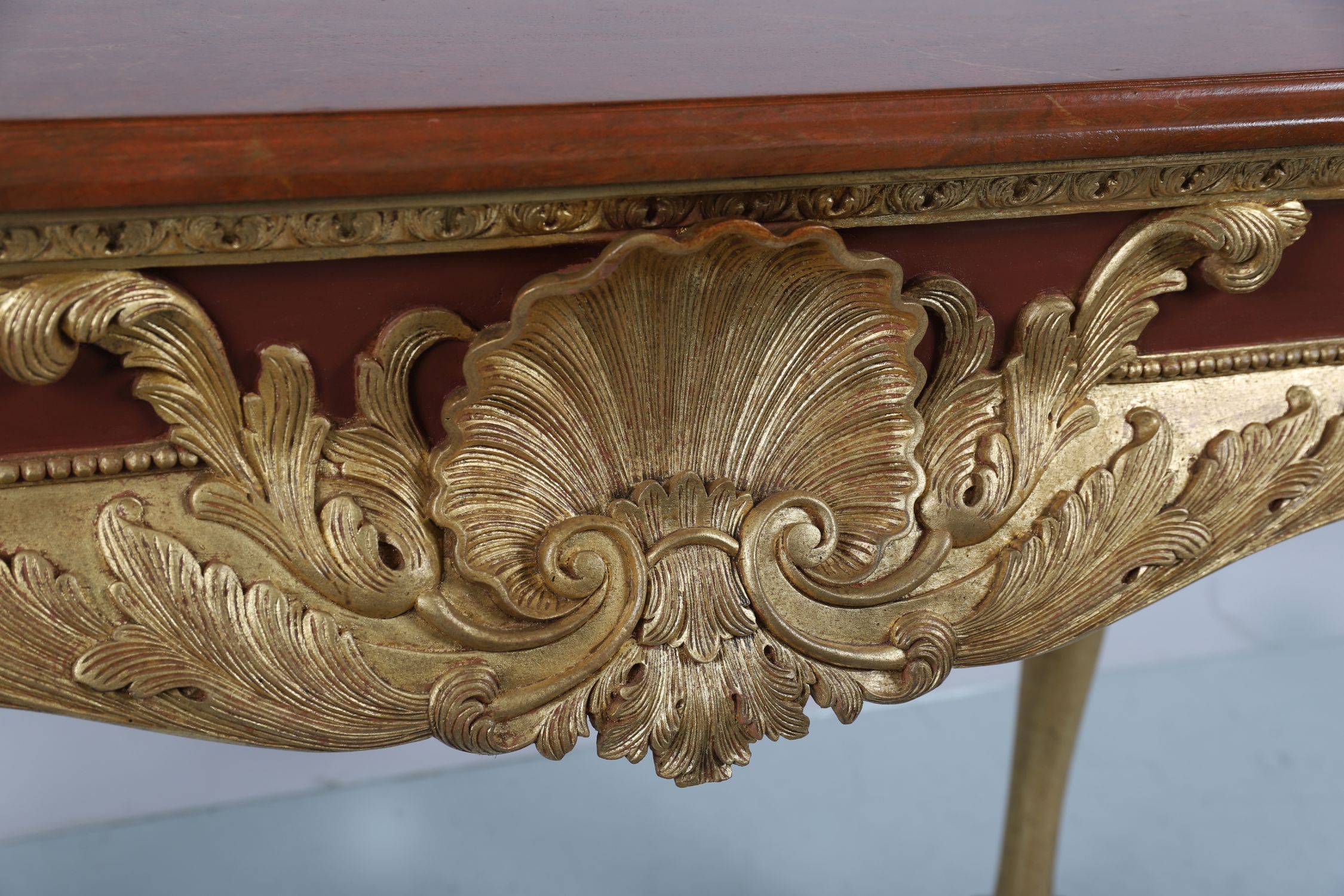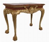 Lot 950 PAIR OF IRISH MAHOGANY AND GILT SCALLOP-CARVED CONSOLE TABLES