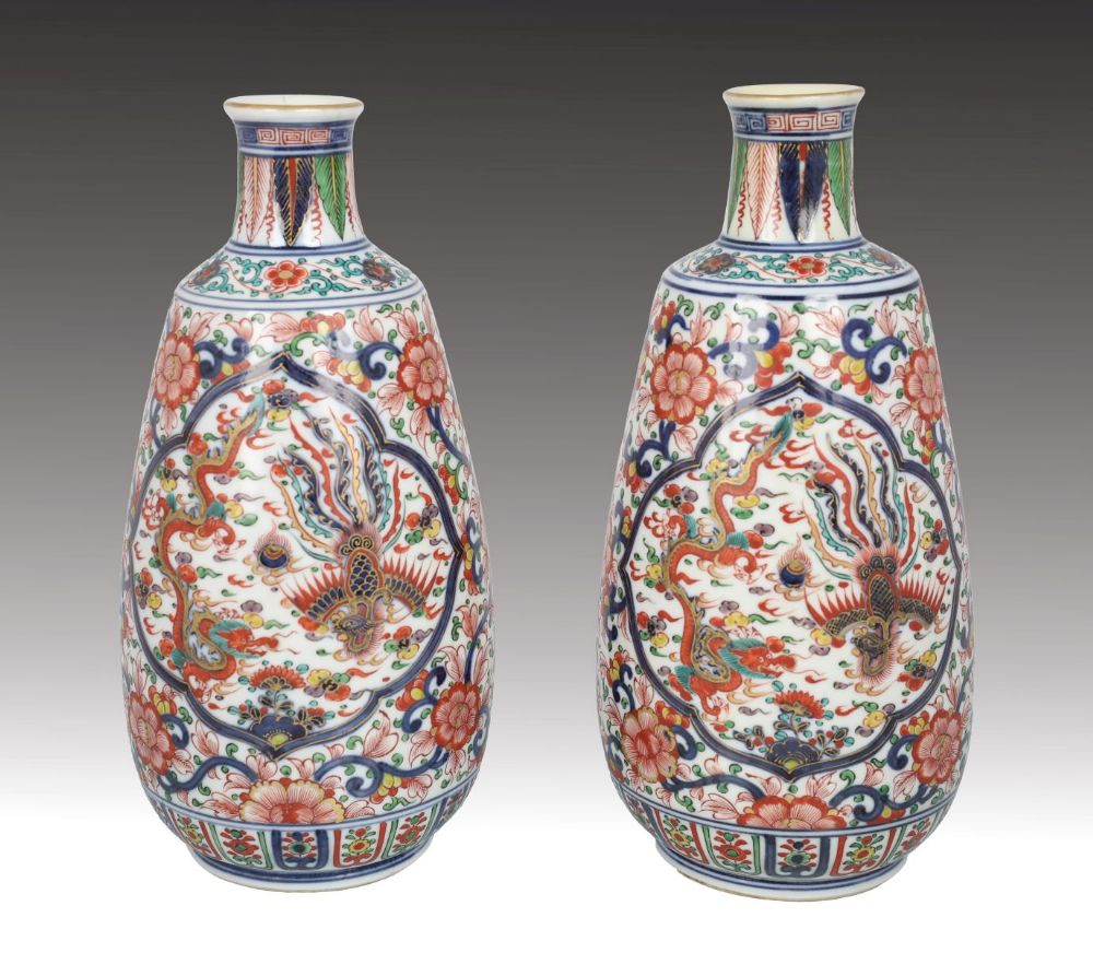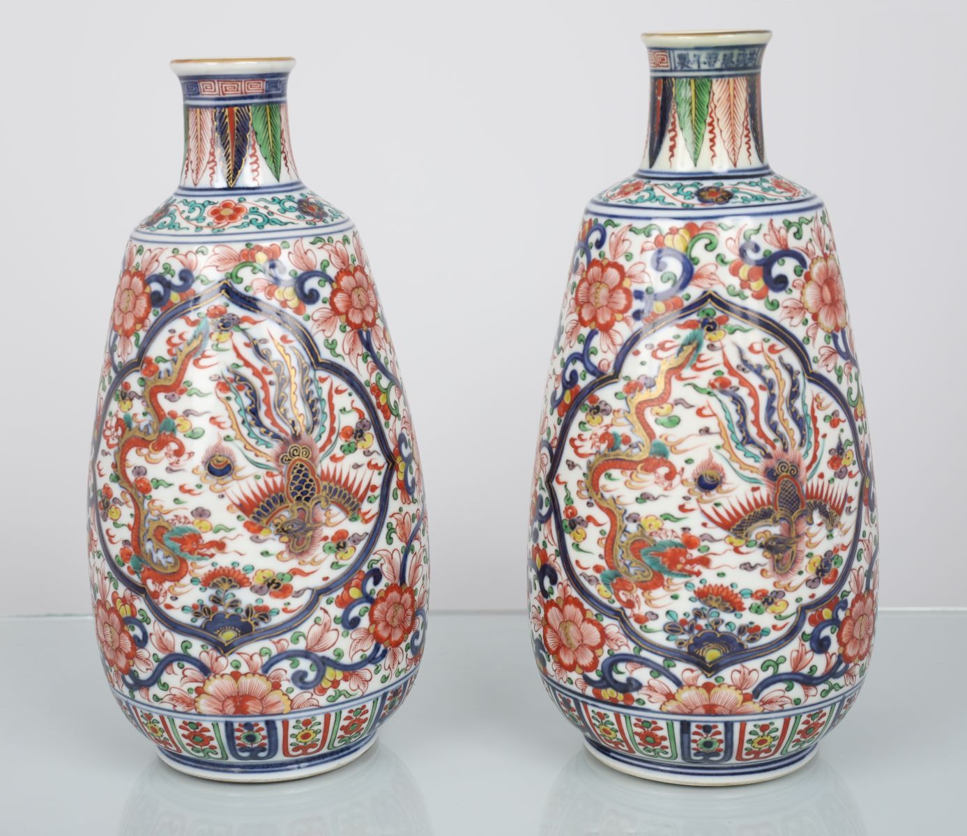 Lot 130 PAIR OF JAPANESE POLYCHROME IMARI VASES