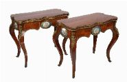Lot 360 PAIR OF KINGWOOD AND SEVRES PORCELAIN MOUNTED CARD TABLES, 19TH CENTURY
