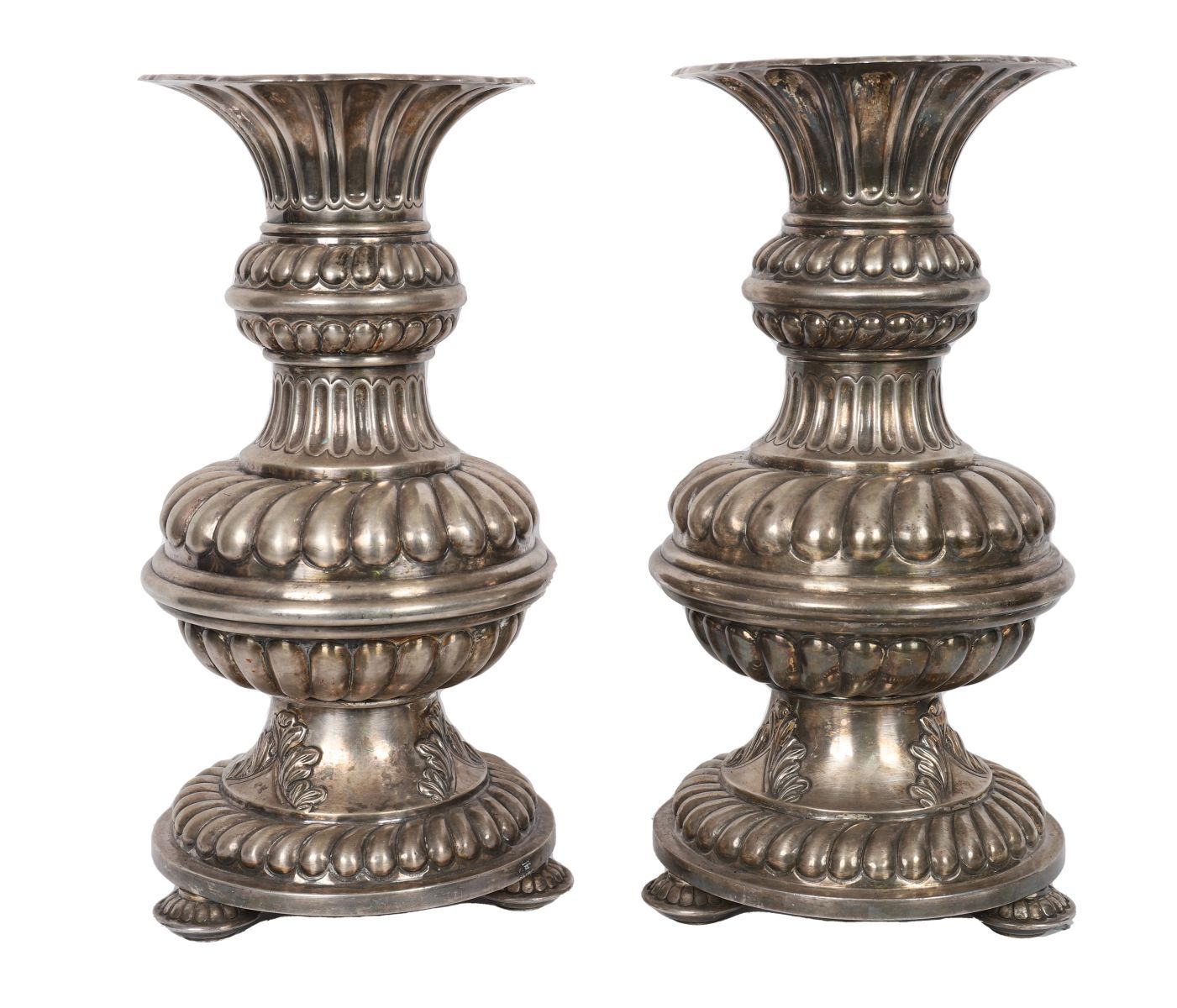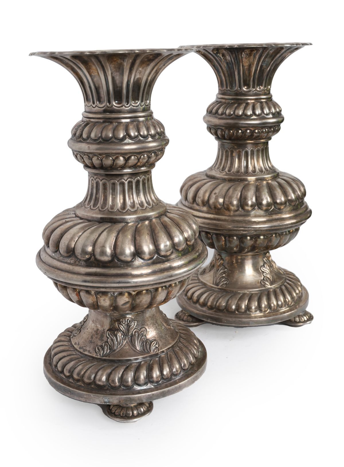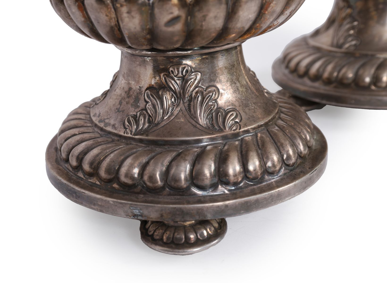 Lot 536 PAIR OF LARGE 19TH-CENTURY SILVER PLATED URNS
